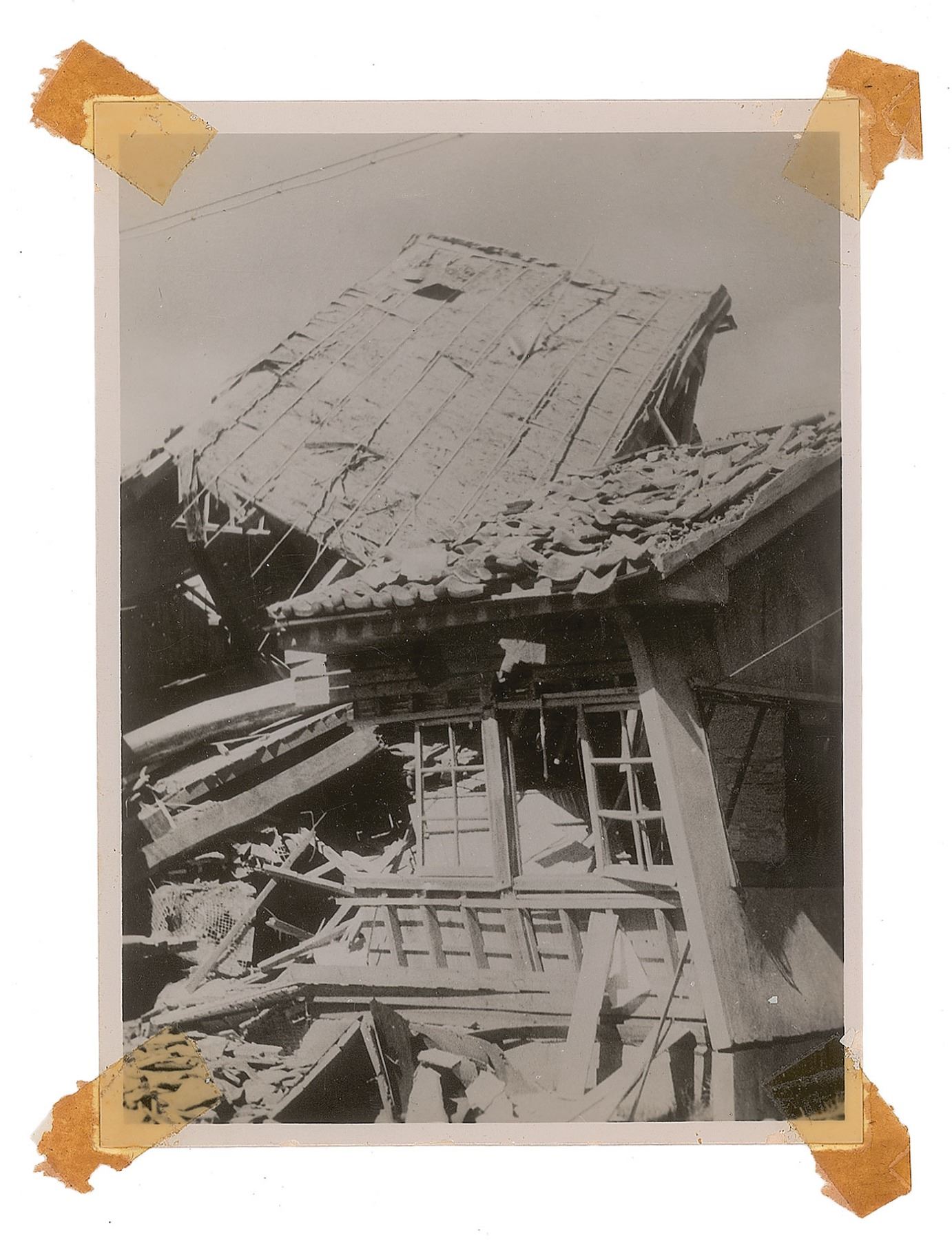 Original vintage glossy 4 x 5.5 photograph of a destroyed building at Nagasaki, taken by Yosuke Yamahata, a Japanese military photographer, on August 10, 1945, a day after the atomic bomb was dropped on the city. In fine condition, with old tape at the corners.