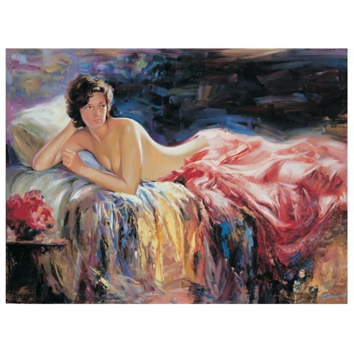 "Naked" is a limited edition Giclee on Canvas by Igor Semeko. The piece is numbered, hand signed by the artist, and come with a letter of authenticity. Measures approximately 12" x 16".