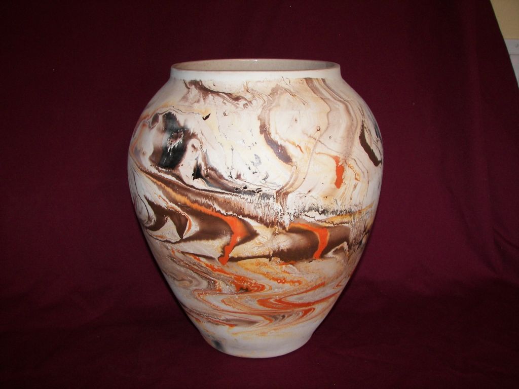 , (6132) Nemadji Pottery Vase , 12 1/2" Tall X 10" Diameter, Stamped Bottom,