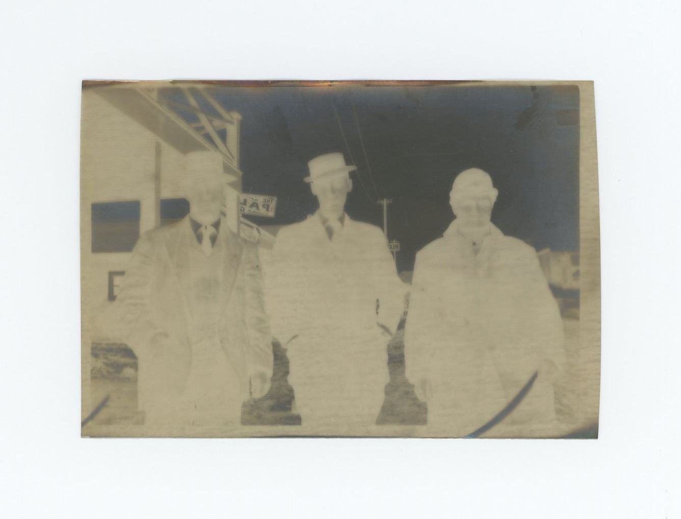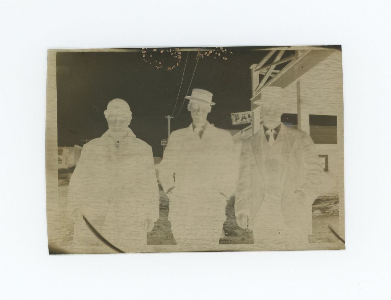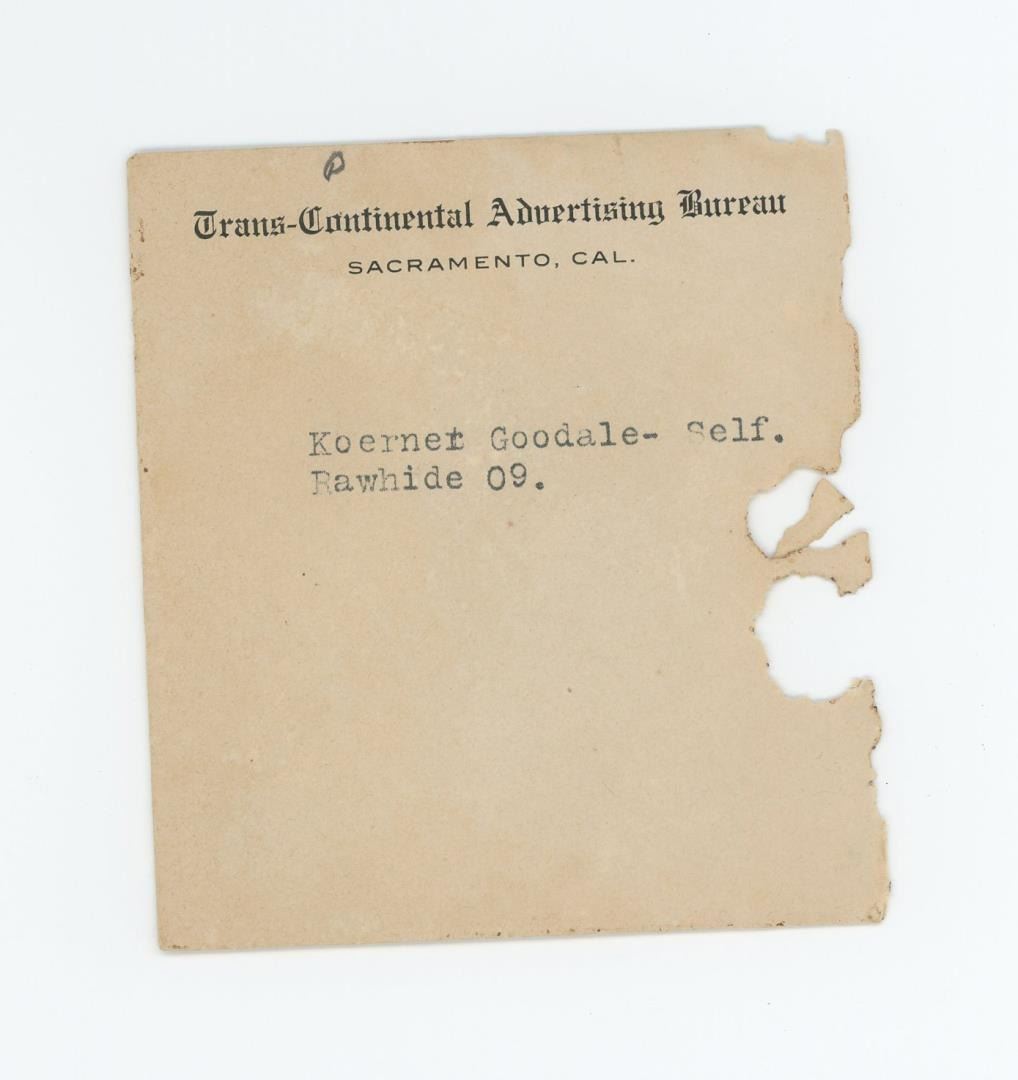 3 3/8" by 2 3/8". In December 1906, prospector Jim Swanson made a discovery of a rich gold and silver deposit in the hills near what became Rawhide. He was soon joined by Charles ("Charley") B. Holman and Charles ("Scotty") A. McLeod, who also found sizeable deposits nearby on Hooligan Hill. McLeod had recently been ordered to cease prospecting around the nearby camp of Buckskin, and bitter about this, he suggested the name of Rawhide for the new camp, as a play on the name of the Buckskin camp he held with contempt. Word spread, and both Holman and McLeod sold their claims to investors and moved on to Stingaree Gulch later in 1907, where they found yet another large deposit. The two men sold these claims for even more money, and then left the area to prospect elsewhere. The frenzy that these claims created soon had Rawhide booming. Investors began selling stocks at a frenetic pace, and the town soon had a population of about 5,000, with: three banks, four churches, a school, twelve hotels, twenty-eight restaurants, a theater, and thirty-seven saloons. While the original mines and claims did produce a decent profit in gold and silver, the fever created an amount of activity far in excess of what the mines could support. Stock swindlers like George Graham Rice, a flashy con-artist from Goldfield, plied their trade, creating a sense that Rawhide would be the next Virginia City (or the like of any number of other Nevada boom towns), with untold riches to be had for the savvy folks who would just invest in his companies. Others, like businessman George "Tex" Rickard came to Rawhide to establish legitimate businesses, and make money off the boom while it lasted. Rawhide's hey-day was short-lived; the glaring, gross over-promotion which manipulators performed to inflate the worth of Rawhide doomed its chance for success from the start. In the short span of two years the town went from its peak population of 7,000 people (March to June, 1908), to fewer than 500 people by the latter part of 1910. Helping push the decline of the town even further along was a disastrous fire which swept through Rawhide in September 1908, along with a flood in September 1909, from which many people did not recover or rebuild. While the original mines worked out the last of the gold and silver from the veins first discovered by Swanson, Holman, and McLeod, people began to leave the area, moving to the next "big thing". While there remained a few people eking out a life working in the mines, or processing the ore, or just working their own claims and prospecting, for all intents and purposes the town became a hollow shell of what it once was. The population was 32 in 1940.