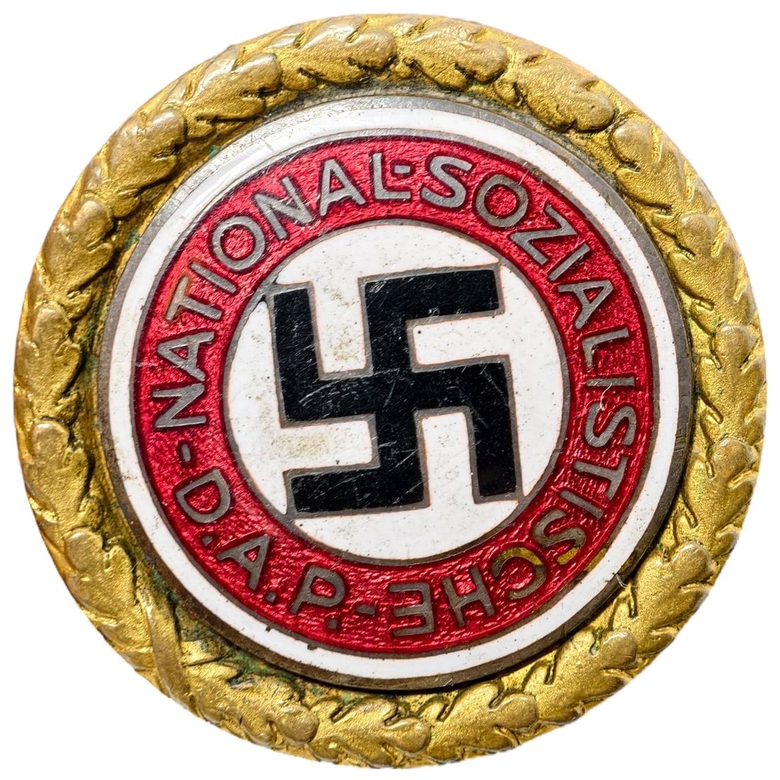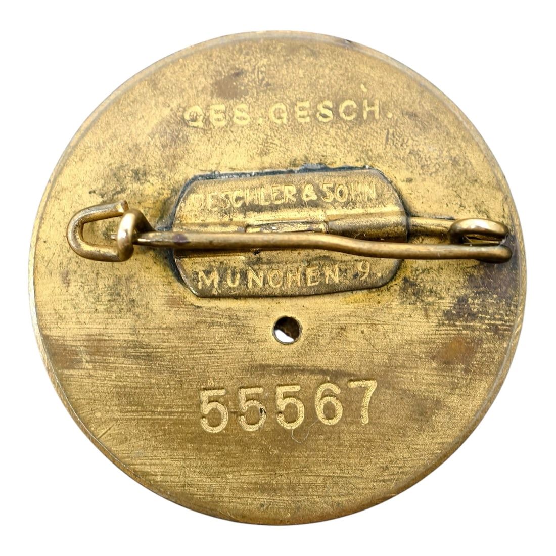 Named NSDAP Golden Party Badge for Ernst Beissner who was an SA leader. Ernst Beißner was born the son of merchant Carl August Beißner (* October 24, 1866 in Grossenwieden, Schaumburg) and Maria Pauline Eleonore Benzenberg (* August 15, 1870 in Wuppertal-Elberfeld). After attending elementary school and secondary school in Hattingen, where he graduated from high school, Beißner completed a two-year commercial apprenticeship in the textile industry .Following a three-month bank traineeship, he joined his father's retail business, where he served as managing director from April 1, 1923, to August 15, 1933. At the same time, he worked as a state lottery collector from February 1, 1925, to September 30, 1933. From August 15, 1933, he was a full-time SA leader.Beißner married his first wife on January 3, 1929. His wife died on April 21, 1930, during the birth of their son, Ernst Jürgen. Beißner's second marriage followed on January 11, 1935. His marriage to Johanna Auguste Friederike (born November 3, 1906 in Haspe) produced two sons, Karl Alfred (born March 21, 1938) and Ralf Frank (born September 20, 1942), and a daughter, Bärbel (born March 7, 1940).Career in the NSDAP and SA in the Weimar Republic (1927 to 1933) On January 27, 1927, Beißner joined the NSDAP ( membership number 55,587). [ 2 ] From November 1, 1930, to February 15, 1932, he served as treasurer of the Hattingen local branch. From September 1, 1931, to February 15, 1932, he held the positions of deputy local branch and propaganda leader of the Hattingen local branch. From September 1, 1931, to December 1, 1931, he was also propaganda leader for the Ennepe-Ruhr district.On January 1, 1931, Beißner joined the SA in Hattingen. From July 1, 1931, to November 30, 1932, he served as the money manager of the SA subgroup Westphalia South. On December 1, 1932, Ernst Röhm appointed him money manager of the SA group Westphalia, a position he held until August 15, 1933.Nazi era On August 15, 1933, Beißner was appointed group financial manager of the SA Group Westphalia. By Führer Order No. 25 of April 1, 1934, he was promoted to Administrative Senior Leader of the SA and appointed leader of the administrative office of SA Group X, a position he held until September 30, 1934. During the Röhm Affair in early summer 1934, Beißner was arrested but not shot.By Führer Order 27 of October 1, 1934, Beißner was appointed leader of the administrative office (cashier) of the SA Group Saxony, a position he held until February 11, 1940. He also became SA Brigadeführer in Dresden . [ 1 ] On February 12, 1940, he was appointed Reich Treasury Administrator. He held this position until April 30, 1940. From May 1, 1940, to December 31, 1940, he was department head (chief of the monetary administration office) in the Supreme SA Leadership in Munich. On January 1, 1941, Beißner was relieved of his previous position and appointed head of the main administration office of the Supreme SA Leadership (Führer Order 76).On 10 April 1938, Beißner was unsuccessfully nominated in the "Führer's list for the election of the Greater German Reichstag ". [ 1 ]Beißner, who left the Protestant Church on December 16, 1937, was also a district leader in the Combat League for Small and Medium-Sized Businesses and a recipient of the NSDAP's bronze and silver long service awards, the Golden Party Badge (No. 55,587, awarded on April 14, 1934), the East Mark Liberation Medal, and the Sudetenland Liberation Medal. He also participated in the Reich Party Rallies of 1934, 1936, 1937, and 1938, and in the Westphalian subgroup march on July 9, 1933, in Dortmund .After being deemed indispensable in 1940 and 1941, Beißner was drafted into the Homeland Anti-Aircraft Unit on May 24, 1943. From May 24 to June 6, 1943, he participated in the Homeland Anti-Aircraft Unit training course in Munich.SA promotions General SA:December 1, 1932 Standartenführer April 1, 1934 Oberführer May 1, 1937 Brigadeführer (Führer Order 52) January 30, 1941 Group Leader (Führer Order 77) SA administration:November 1, 1931 Subgroup Administrator (by order of Ernst Röhm) December 1, 1932 Group Money Manager (by order of Ernst Röhm)