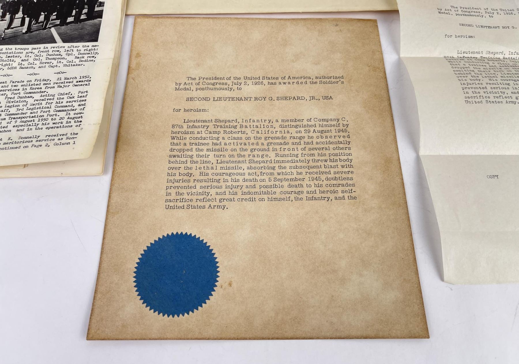 Very nice grouping. Named to Second Lieutenant Roy G Shepard Jr. Our Nation’s highest military award for valor is given for action above and beyond the call of duty.