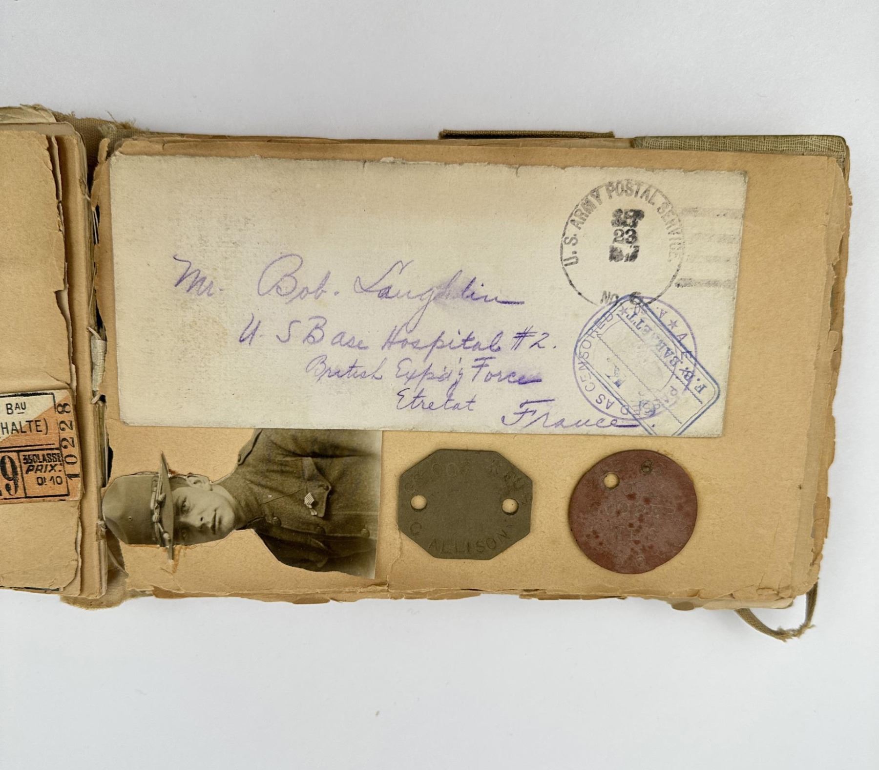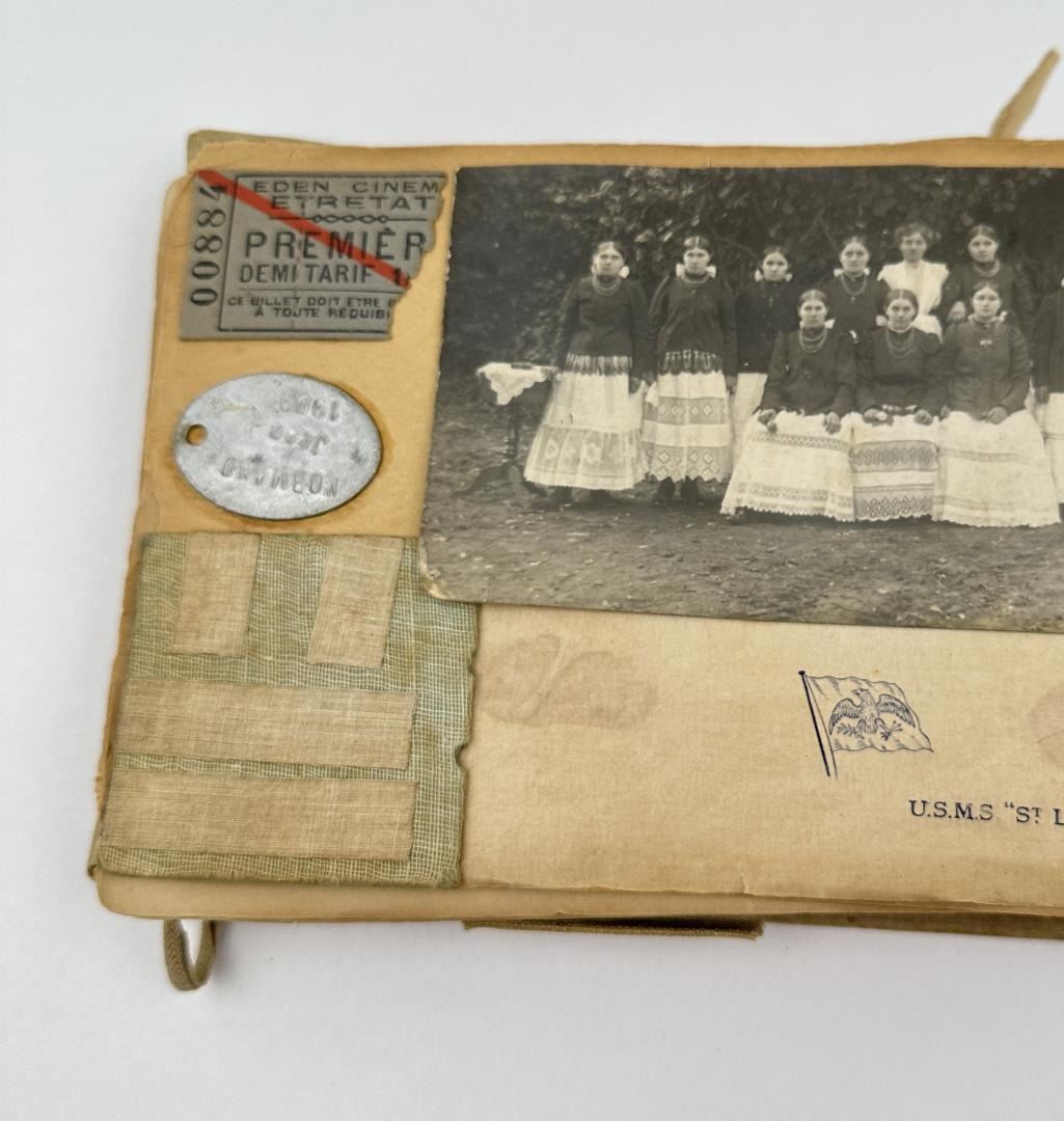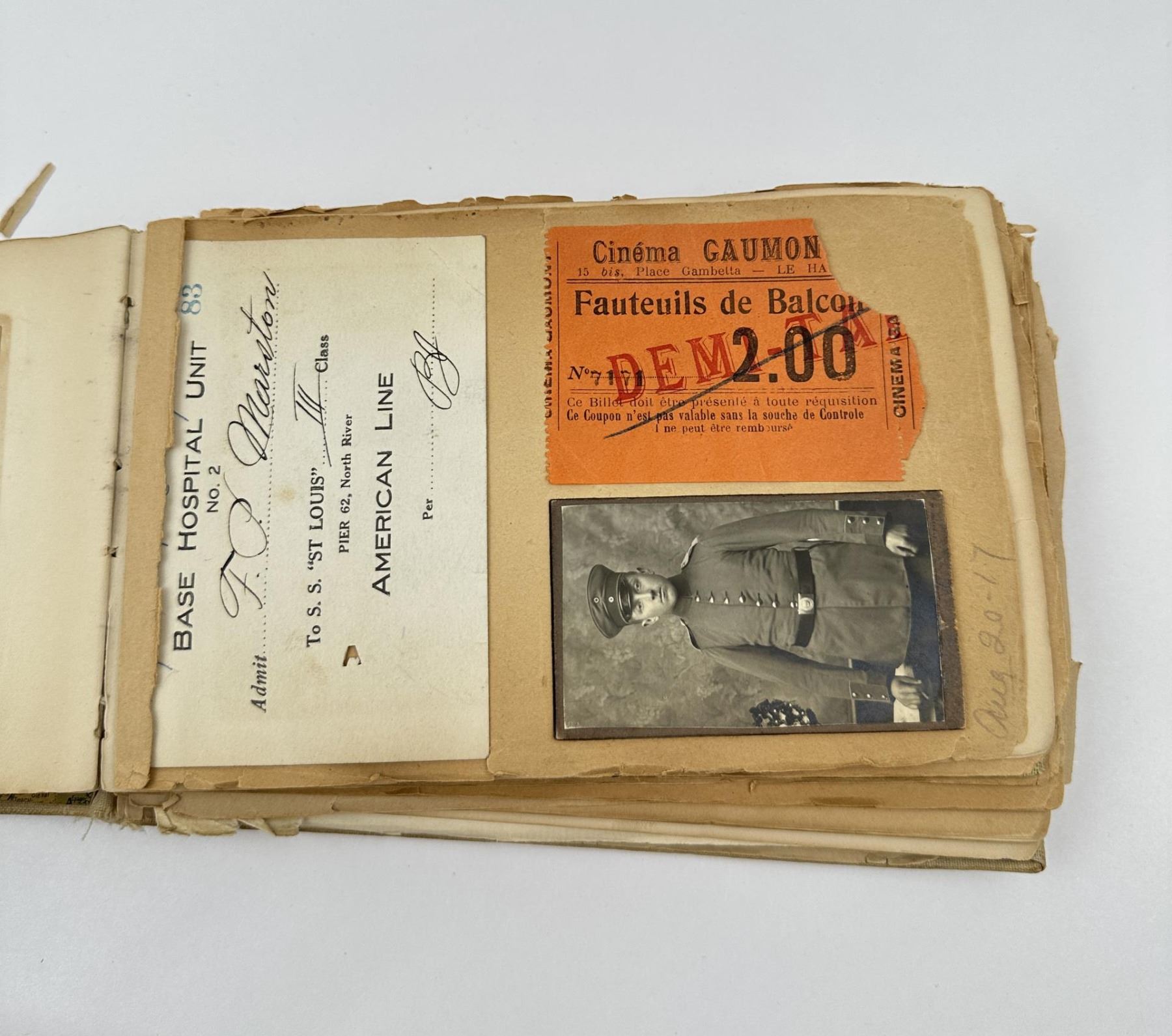 Wonderful album, trench art, dog tags, photos, patches and so much more. Named to a Fred Marston US Army Reserve No 2 Hospital Base France.
