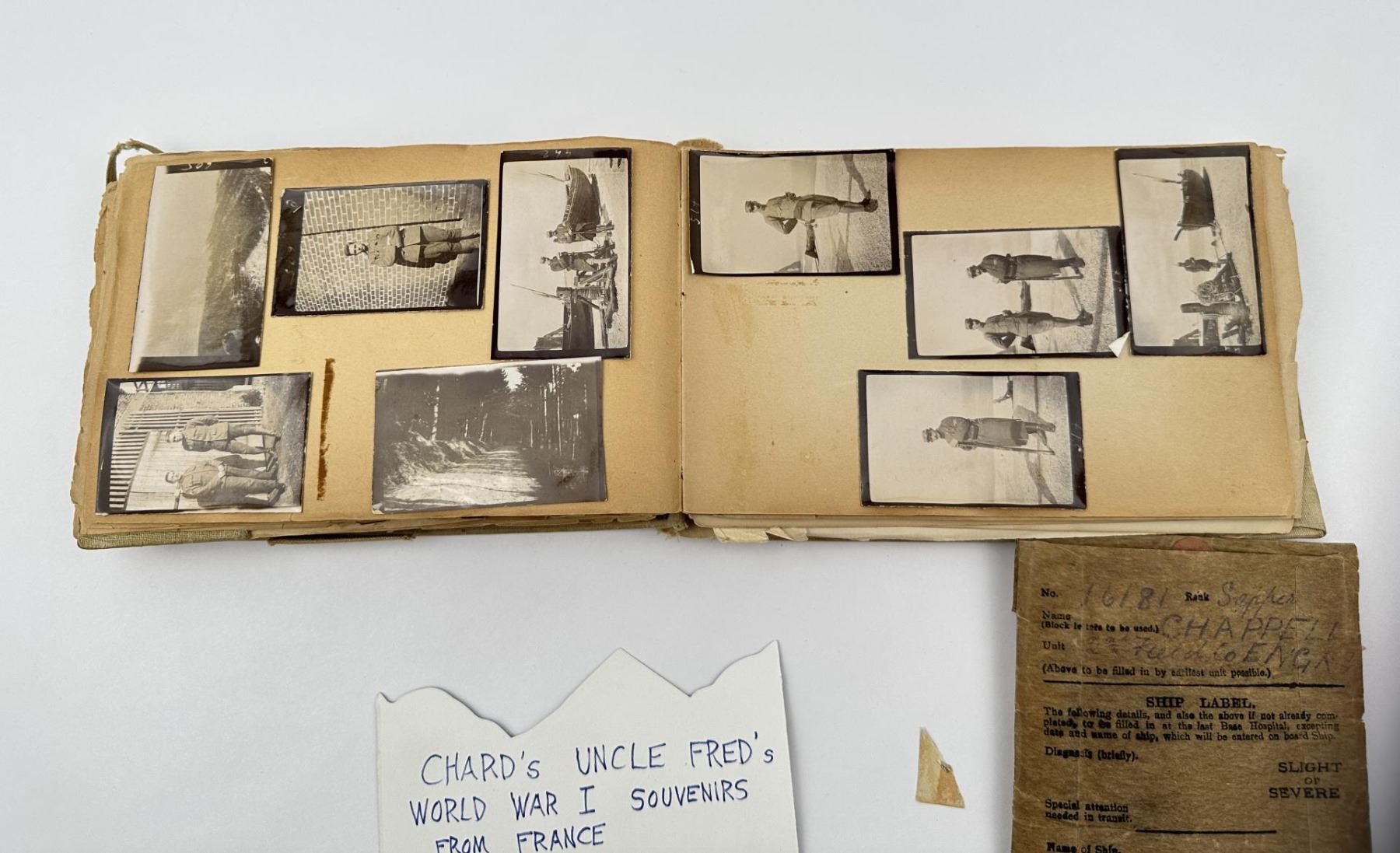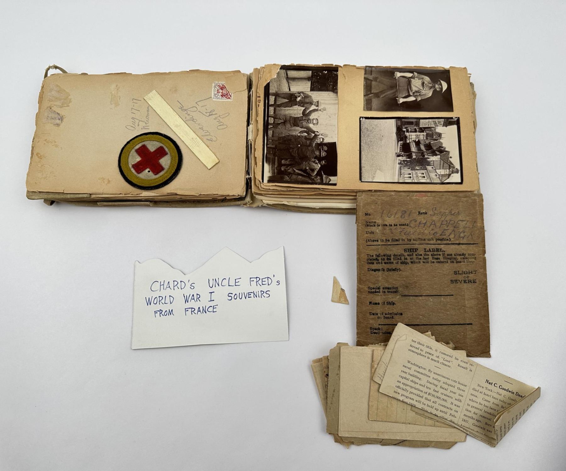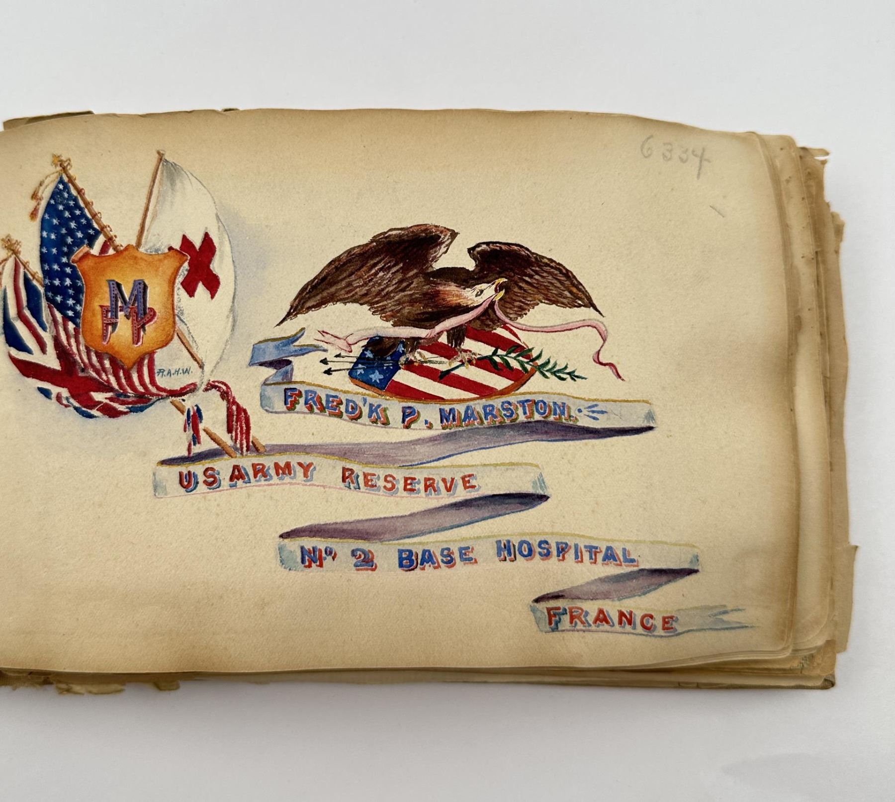 Wonderful album, trench art, dog tags, photos, patches and so much more. Named to a Fred Marston US Army Reserve No 2 Hospital Base France.
