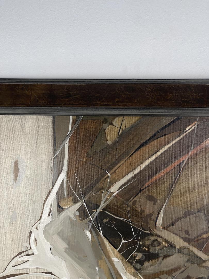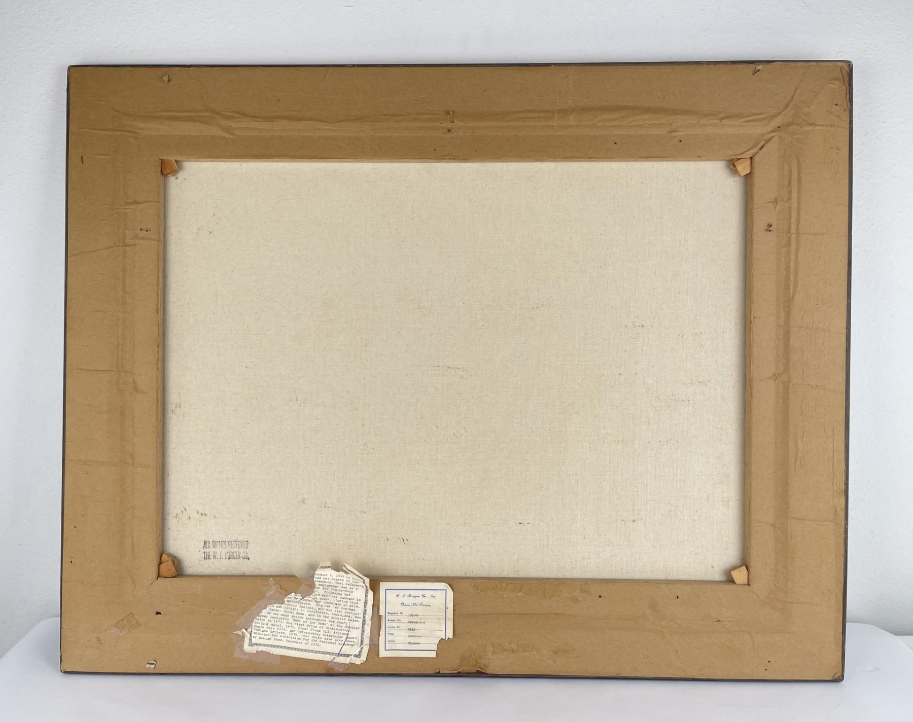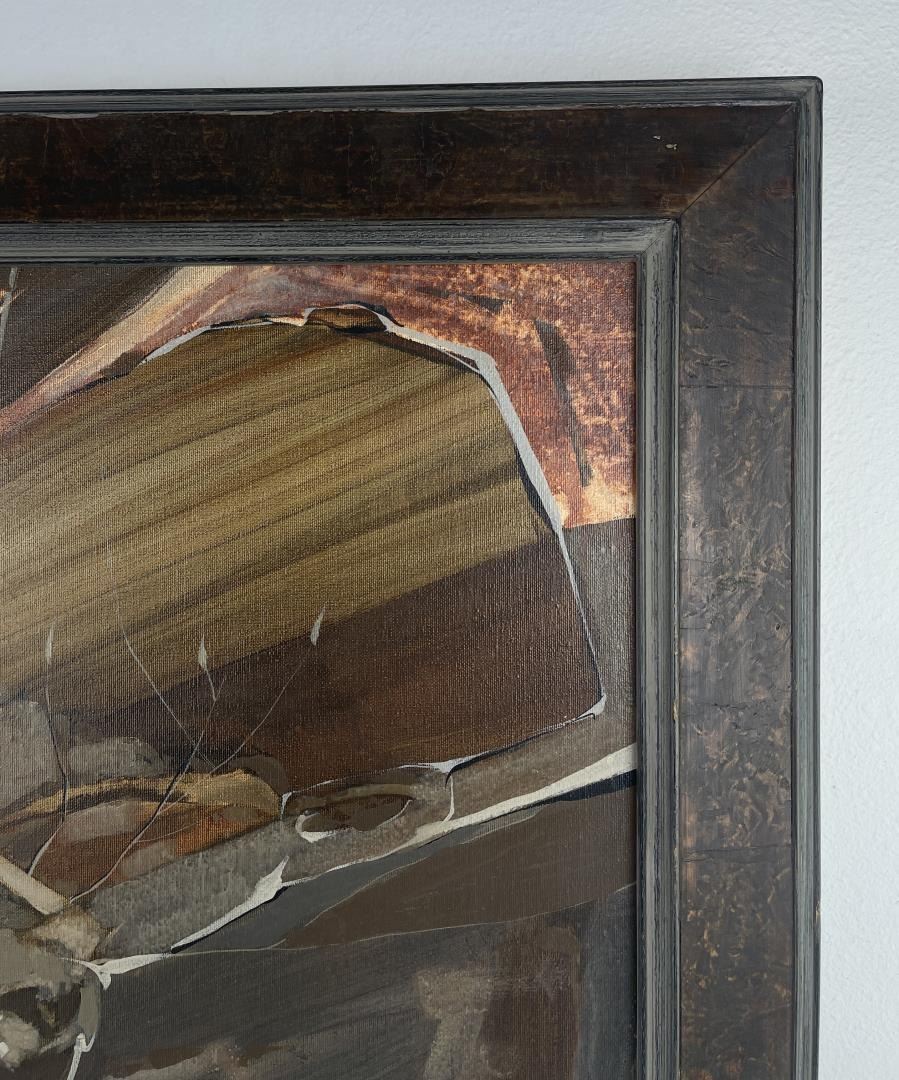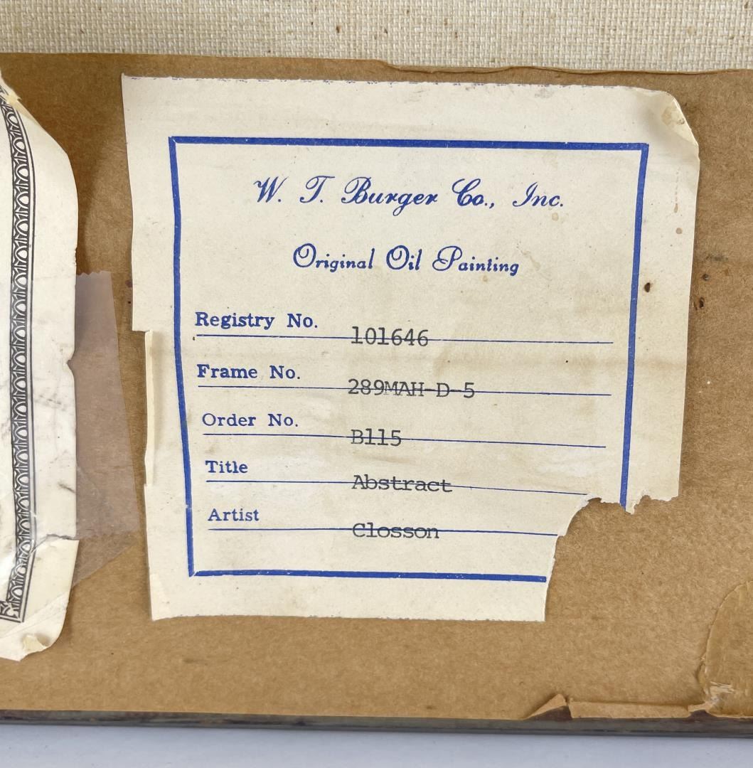 29" by 37.25" framed. Nanci Blair Closson has a constant need for challenge and experimentation. As a result, she is always searching for new means of expressing herself through her art. Although she is best-known as an abstract watercolorist, Closson states that she has "a strong urge to break away from the two-dimensional, with a combination of materials--wood, clay, papers, material--and go beyond the illusion of three dimensions on a flat surface." She is now somewhere in between, she says, with constructions that are often raised and layered. Called "layered watercolors," Closson's works make use of rag mattboard and torn papers to create landscapes. She first paints the various pieces, then shapes them, and finally applies them--using collage techniques--to form patterned three-dimensional works that, she describes, have a firm symbolic and subconsciously controlled structure. "What I have experienced in nature is a broad source from which I draw, but surprisingly, what I put down visually does symbolize and parallel abstractly my inner self, the spiritual part of me." Born in Durham, North Carolina, Closson grew up on a farm in Indiana. Because hers was a fairly isolated childhood, Closson used her imagination to occupy her time, gathering anything she could find--burlap feedsacks, chicken feathers, stones, and tomato stakes--as artist's tools. "I arranged, rearranged, created, and recreated various environments in the chicken coop, the cornshed, barn, and hay loft," she recalls. When playing Tarzan, she colored on sheets to simulate leopard and tiger skins, draped them around herself and, armed with a whittled bean pole spear, wandered barefoot to the jungle woods. Closson took her artistic inclinations to Purdue University, where she earned a Bachelor of Arts degree. Later, while living for thee years in Panama and the Canal Zone, where her husband was stationed with the U.S. Army, Closson found an immediate and receptive market for her work. "For two years," she says, "I sold everything I painted, had several one-woman shows, and won awards in juried exhibitions. Overnight, a full-time career was launched, and though circumstances would change from being 'a big fish in a little pond,' after returning to the States, I was hooked on art, having experienced the sweet smell of success. Closson purposely varies her styles and techniques: hard-edged watercolors are spliced with hazy, floating forms; bold, textured abstracts in acrylic sweep across large canvases; batik-like characteristics define still other realistic landscapes. Once partial to grays, blues, and browns, Closson's palette now consists of the bright colors of the Southwest. "Although subtlety remains characteristic of my work, she explains, "the color has more vibrancy now." Closson is listed in Who's Who in American Art and is a member of the prestigious American Watercolor Society, the Audubon Artists, the National Watercolor Society, and several other professional organizations. Her works have been included in watercolor exhibitions throughout the country, and have been featured in two books: Master Class in Watercolor and Watercolor, The Creative Experience.