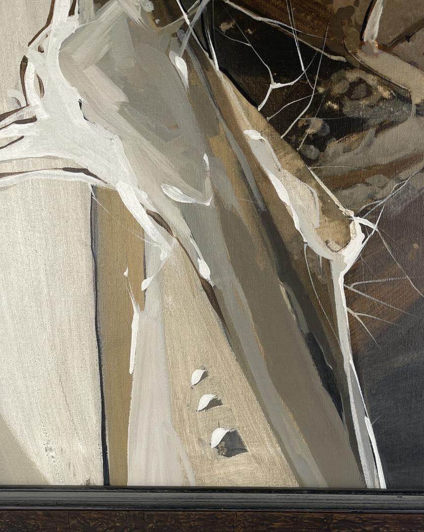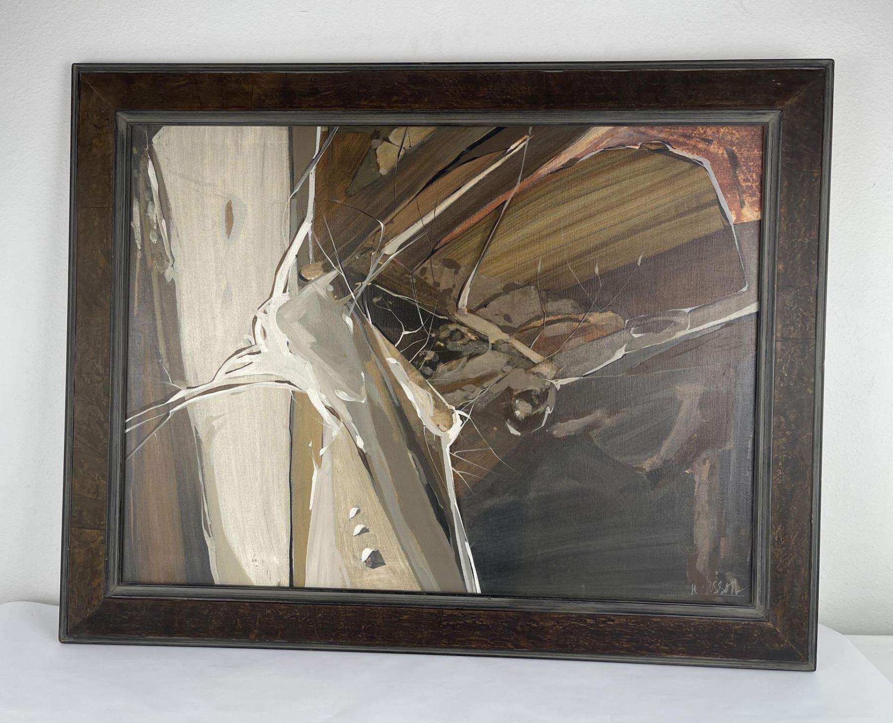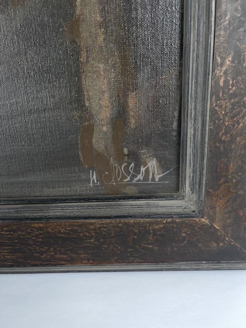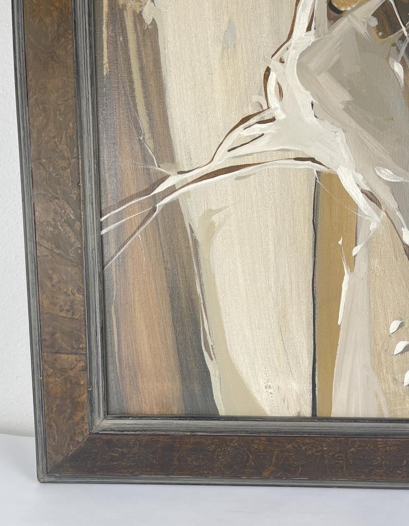 29" by 37.25" framed. Nanci Blair Closson has a constant need for challenge and experimentation. As a result, she is always searching for new means of expressing herself through her art. Although she is best-known as an abstract watercolorist, Closson states that she has "a strong urge to break away from the two-dimensional, with a combination of materials--wood, clay, papers, material--and go beyond the illusion of three dimensions on a flat surface." She is now somewhere in between, she says, with constructions that are often raised and layered. Called "layered watercolors," Closson's works make use of rag mattboard and torn papers to create landscapes. She first paints the various pieces, then shapes them, and finally applies them--using collage techniques--to form patterned three-dimensional works that, she describes, have a firm symbolic and subconsciously controlled structure. "What I have experienced in nature is a broad source from which I draw, but surprisingly, what I put down visually does symbolize and parallel abstractly my inner self, the spiritual part of me." Born in Durham, North Carolina, Closson grew up on a farm in Indiana. Because hers was a fairly isolated childhood, Closson used her imagination to occupy her time, gathering anything she could find--burlap feedsacks, chicken feathers, stones, and tomato stakes--as artist's tools. "I arranged, rearranged, created, and recreated various environments in the chicken coop, the cornshed, barn, and hay loft," she recalls. When playing Tarzan, she colored on sheets to simulate leopard and tiger skins, draped them around herself and, armed with a whittled bean pole spear, wandered barefoot to the jungle woods. Closson took her artistic inclinations to Purdue University, where she earned a Bachelor of Arts degree. Later, while living for thee years in Panama and the Canal Zone, where her husband was stationed with the U.S. Army, Closson found an immediate and receptive market for her work. "For two years," she says, "I sold everything I painted, had several one-woman shows, and won awards in juried exhibitions. Overnight, a full-time career was launched, and though circumstances would change from being 'a big fish in a little pond,' after returning to the States, I was hooked on art, having experienced the sweet smell of success. Closson purposely varies her styles and techniques: hard-edged watercolors are spliced with hazy, floating forms; bold, textured abstracts in acrylic sweep across large canvases; batik-like characteristics define still other realistic landscapes. Once partial to grays, blues, and browns, Closson's palette now consists of the bright colors of the Southwest. "Although subtlety remains characteristic of my work, she explains, "the color has more vibrancy now." Closson is listed in Who's Who in American Art and is a member of the prestigious American Watercolor Society, the Audubon Artists, the National Watercolor Society, and several other professional organizations. Her works have been included in watercolor exhibitions throughout the country, and have been featured in two books: Master Class in Watercolor and Watercolor, The Creative Experience.