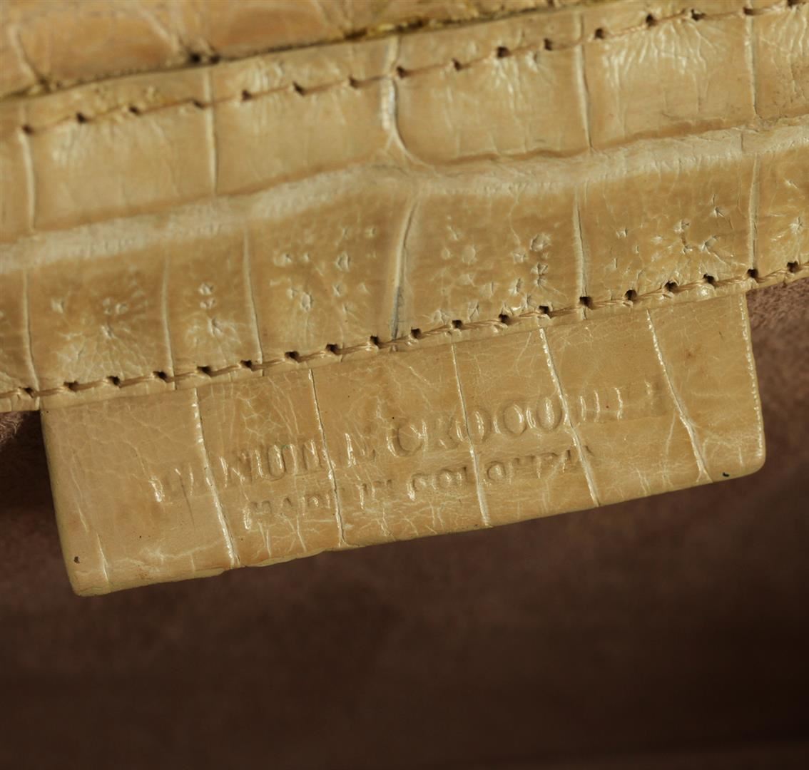 One Nancy Gonzalez Crocodile Clutch Bag. Nancy Gonzalez is considered by many as one of the premier handbag designers in the world. The item is in good condition with light signs of wear. Features: Flap top magnetic closure; suede lining and one interior pocket; highest quality crocodile skin. Measures 9.75"W x 4.75"H. Comes with dust bag.