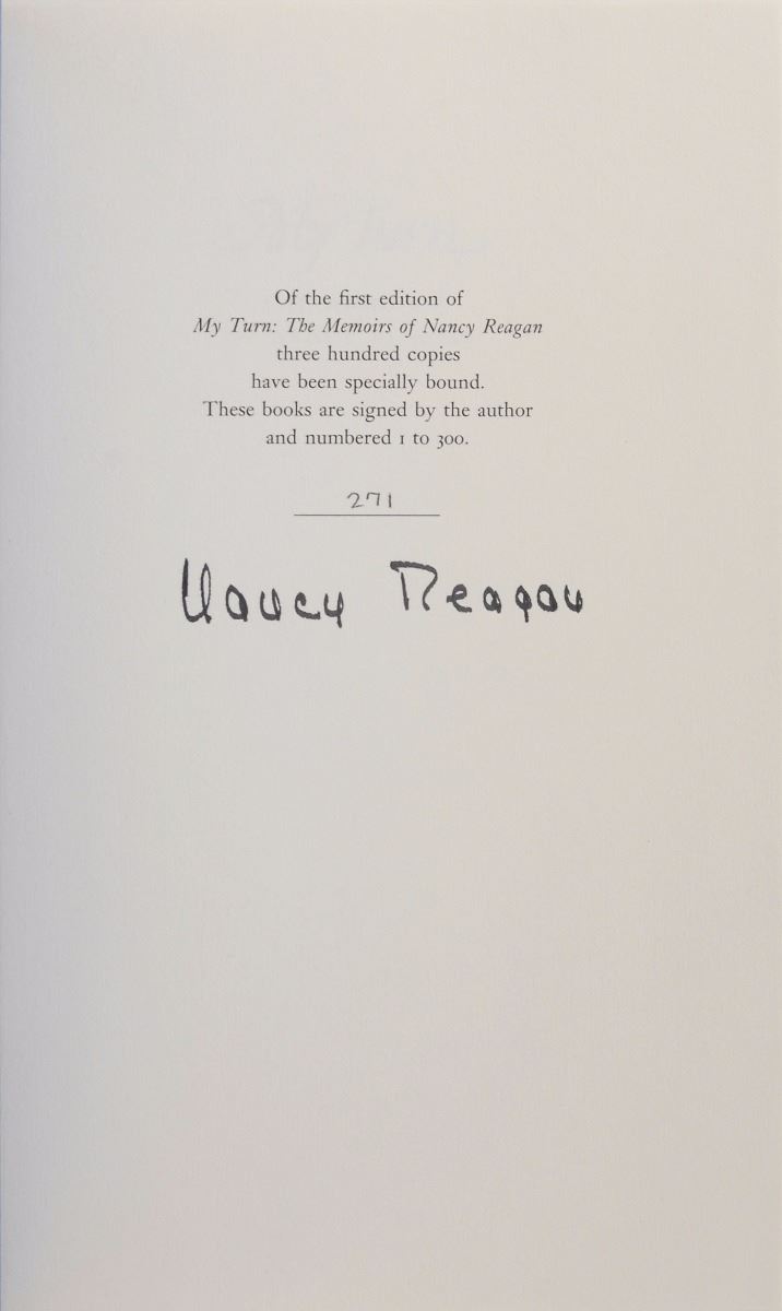 Signed book: My Turn. Limited first edition, numbered 271/300. NY: Random House, 1989. Clothbound hardcover with slipcase, 6.5 x 10, 384 pages. Signed on the colophon in black ink. In fine condition. Pre-certified PSA/DNA.
