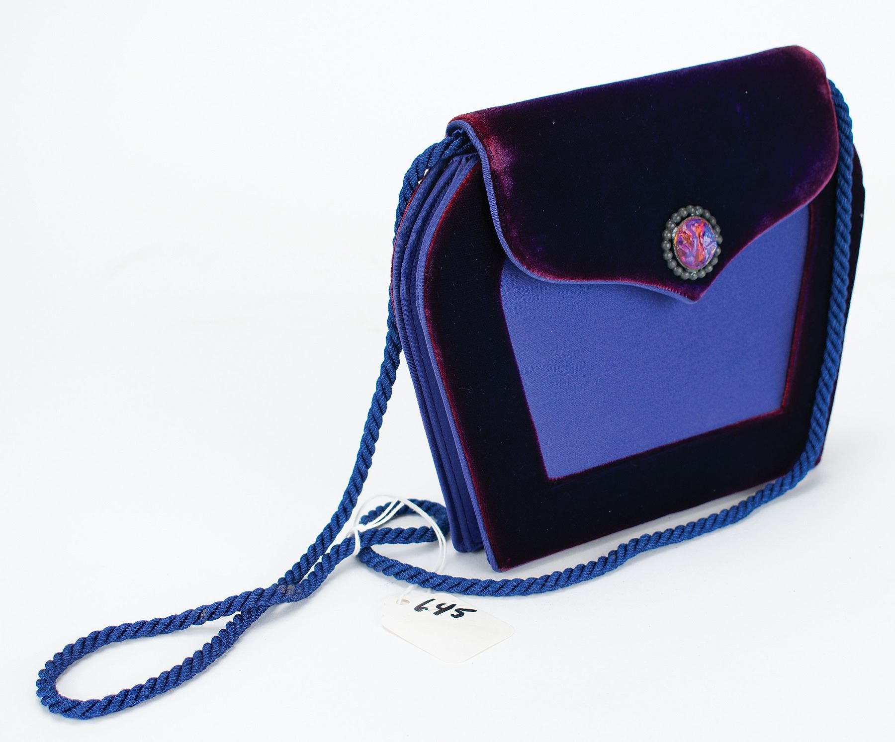 Nancy Reagan's personally-owned purple satin-and-velour purse by Renaud Pellegrino of Paris, France, featuring a flap with snap closure and decorative jewel. In fine condition. Provenance: The Private Collection, President & Mrs. Ronald Reagan, Christie's, September 2016. Accompanied by the Christie's auction tags and a University Archives authentication tag signed by John Reznikoff. Petite and almost always impeccably dressed, Nancy Reagan was well known for her interest in designer classics and her elegant sense of style. Although criticized in 1981 for wearing designer outfits during a recession, the first lady recalled in her memoir My Turn: 'If I had suddenly started dressing differently, how would that have helped the economy? On the contrary: I was told that because so many women look to the first lady as a fashion leader, I provided a great boost for fashion designers.'