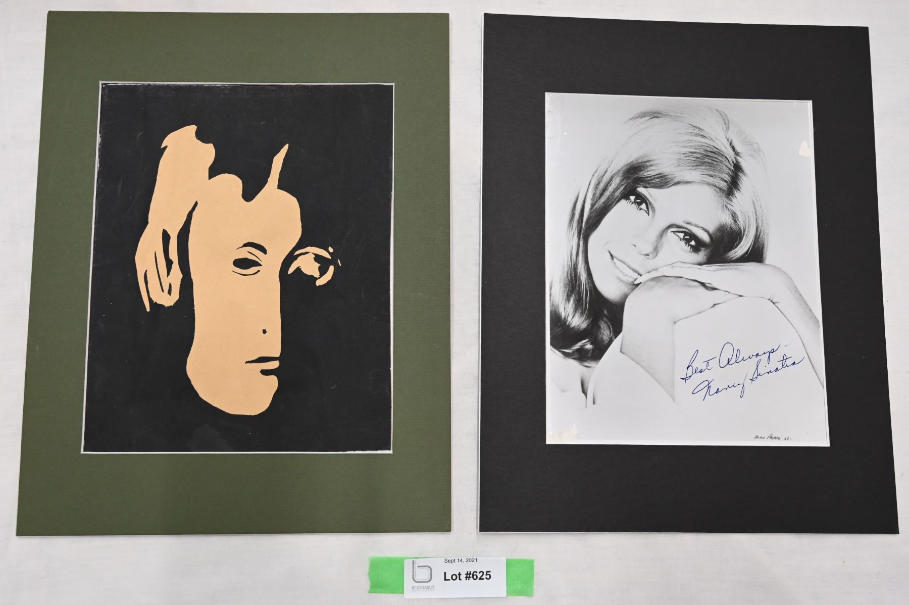 Nancy Sinatra signed photo + abstract art - (silk screen? of john lennon?)