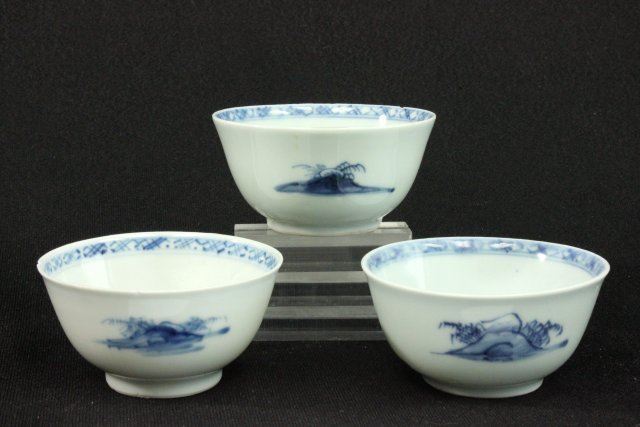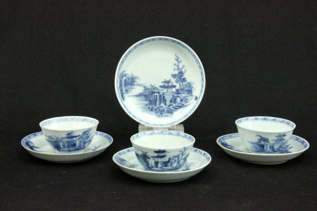 Including 3 Chinese blue & white tea cups & 4 saucers. Cups approx. 3" D. Saucer approx. 4 3/4" D.