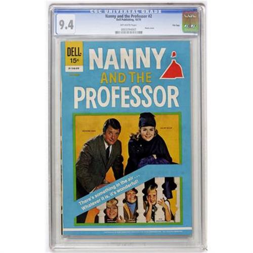<B>Nanny and the Professor #2 File Copy (Dell, 1970) CGC NM 9.4 Off-white pages.</B></I> Photo cover. Overstreet 2007 NM- 9.2 value = $55. CGC census 10/07: 1 in 9.4, none higher.<BR><BR><b>Shipping:</b> Comics - Slabbed (certified) (<a target="_blank" href="http://www.heritageauctions.com/common/shipping.php">view shipping information</a>)