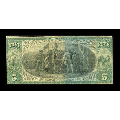 <B>Nantucket, MA</B></I> - $5 1875 Fr. 401 <B>The Pacific NB</B></I> Ch. # 714<BR> New to the census and one of only a literal handful of known $5 1875 examples from this island bank. Well circulated but intact <B>Very Good,</B></I> and bearing the traditional tight New England trim. <BR><BR><b>Shipping:</b> Coins & Currency (<a target="_blank" href="http://www.heritageauctions.com/common/shipping.php">view shipping information</a>)