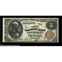 Nantucket, MA - $5 1882 Brown Back Fr. 467 The Pacific NB Ch. # 714A nice $5 Brown Back from this av