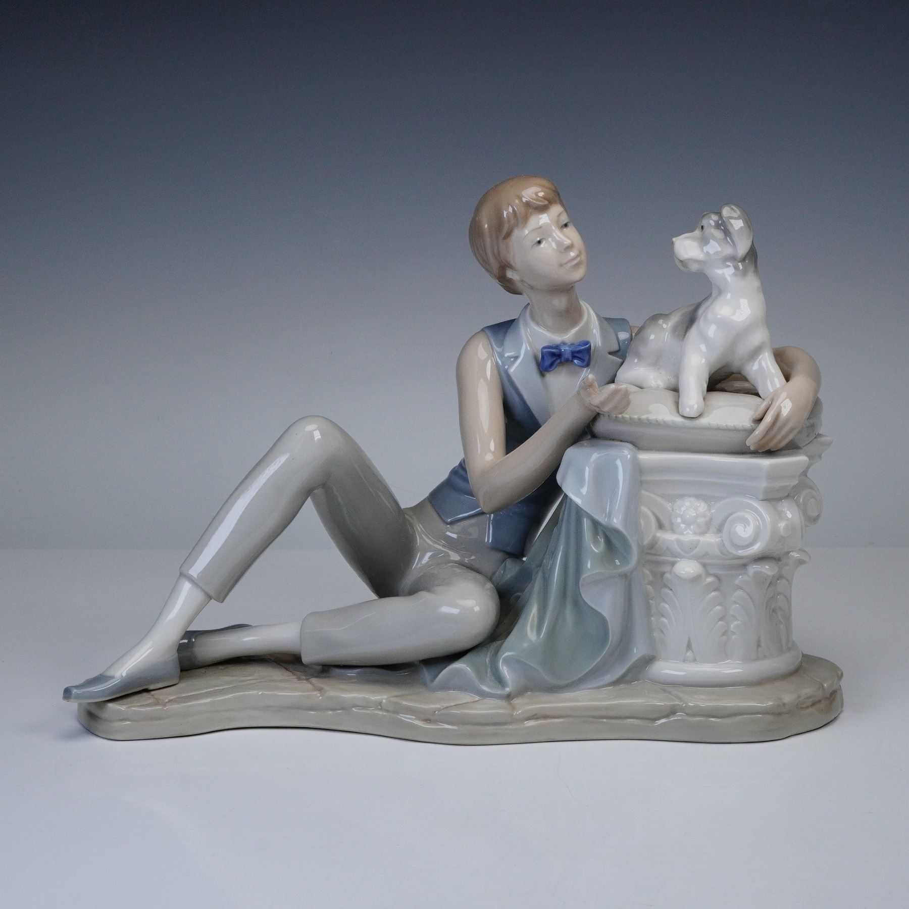 Nao by Lladro Porcelain Figurine, Boy Sitting with Dog