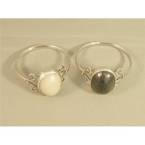 Pair of rare Art Nouveau Napkin Rings, fashioned to resemble a lady's ring. Each is 1-3/4" in diameter., with agate stones, one black and one white. The metal is silver, but is unmarked. Made in England, circa 1920. After 25 years in this business, we will be closing our shop. All prices have been greatly reduced, and we would consider all offers.