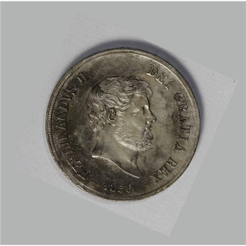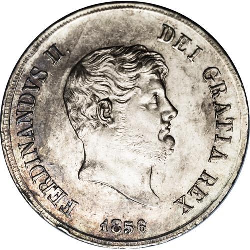 <B>Naples & Sicily. Ferdinand II 120 Grana 1856, </B></I>KM-153c, nicely toned AU-UNC, very sharp details, one small rim ding.<BR><I>From the Monedas Oro Collection</B></I><BR><BR><b>Shipping:</b> Coin/Currency (<a target="_blank" href="http://www.heritageauctions.com/common/shipping.php">view shipping information</a>)