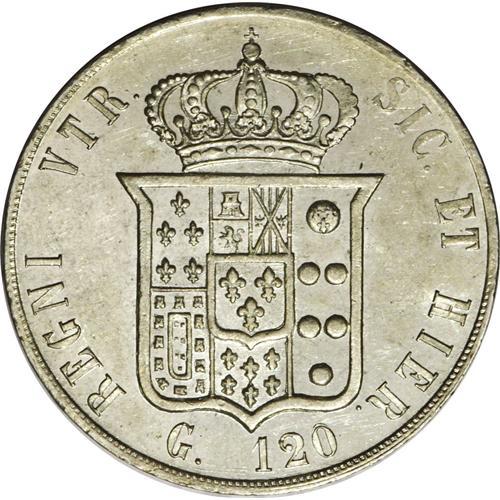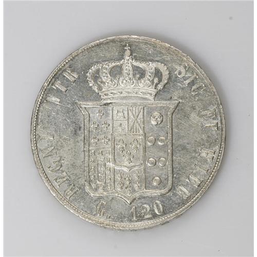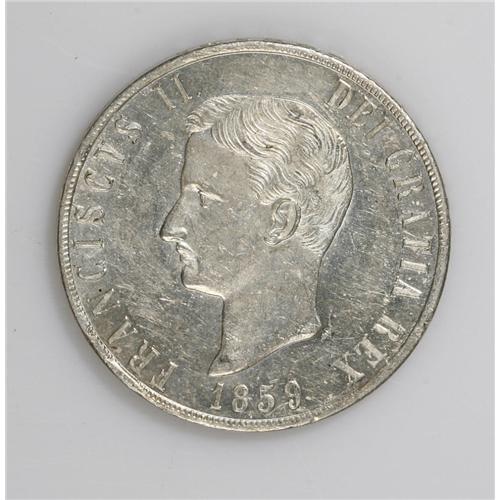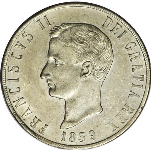 <B>Naples & Sicily. Francesco II 120 Grana 1859, </B></I>KM-C161, UNC with flashy mint luster, minimal handling in the fields.<BR><I>From the Blue Ridge Collection</B></I><BR><BR><b>Shipping:</b> Coin/Currency (<a target="_blank" href="http://www.heritageauctions.com/common/shipping.php">view shipping information</a>)