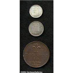 <B>Naples and Sicily. Lot of 3 coins:</B></I> Cr-159 10 Tornese 1859, VF with rim nicks; Cr-150 10 Grana, 1833, BU with adjustments reverse; Cr-151a, 20 Grana, 1842, VF. 3 coins <BR><BR><B>Important notice:</B> Heritage usually auctions material at the rate of 200-250 lots per hour. On some occasions eBay Live bid software or the Internet may not be able to keep up with the pace of the auction. We recommend placing a realistic absentee bid now as insurance to avoid disappointment. Occasionally the auctioneer may eliminate or reject an eBay Live bid, and the auctioneer may also reopen a lot after the close of the eBay live bidding (usually because we missed an audience bid), and may reject your bid even if it shows you as the winning bidder. By bidding via eBay Live, you agree that Heritage may award the lot to another bidder at its sole discretion under the circumstances described above or any other reasonable circumstances. Since eBay bids are not shown to us until we open the lot on the floor, we treat those bids just like floor bids. In most cases the floor responds before the eBay bid is presented to us, due to Internet lag time, so for consistency we have made it a policy that floor bids are always considered first over tie eBay live bids. Also please note that all Heritage lots purchased through eBay Live carry a 20% Buyer's Premium. Please make sure you read the Terms and Conditions before you bid.