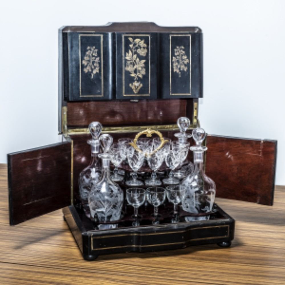 Original Napolean III Tantalus Set - Some Minor Condition Issues - Inlay & Lacquer Missing 2 of the Cherry Glasses