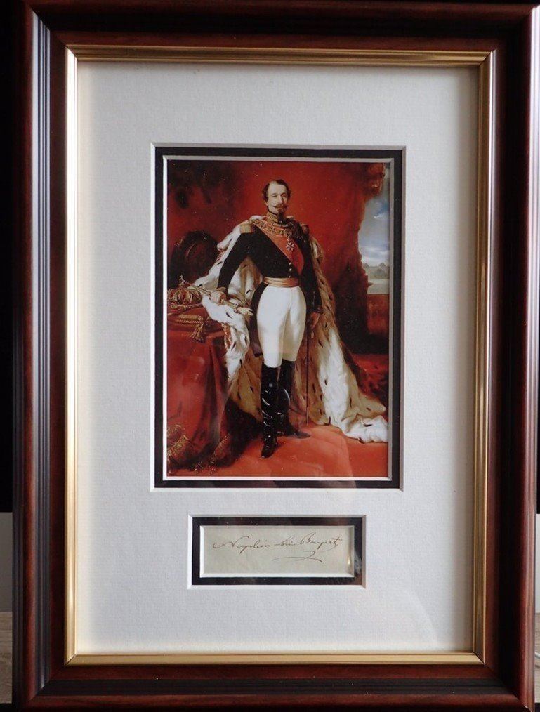Louis-Napol Bonaparte was the President of France from 1848 to 1852 and, as Napoleon III, the Emperor of the French from 1852 to 1870. He was the only president of the French Second Republic and the head of the Second French Empire. Autograph in very good condition. Mounted and framed and supplied with coa.