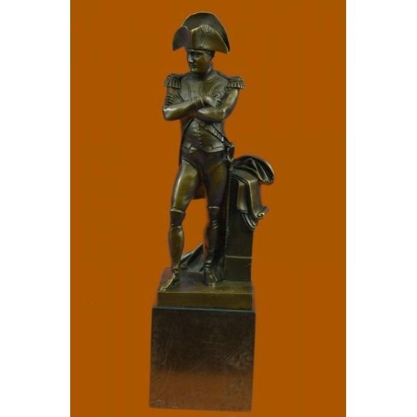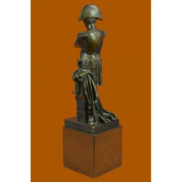 This Is A Bronze Bust Honoring The French Commanding Martial Giant Napoleon Bonaparte 15 August 1769 – 5 May 1821. As Napoleon I, He Was Emperor Of The French From 1804 To 1815. His Legal Reconstruction, The Napoleonic Code, Has Been A Major Influence On Many Civil Law Administrations Worldwide, But He Is Best Remembered For The Wars He Led Against A Series Of Coalitions, The So-Called Napoleonic Wars, During Which He Established Dominion Over Much Of Europe And Sought To Spread Revolutionary Ideals. The Beholder Witnesses Him Standing Straight Ahead With Proudness, His Fanning Fortune After All, Finally Defeated At The Battle Of Waterloo In June Of 1815. The Sculpture Was Cast Using The Archaic Method Of Lost-Wax Casting And Stained With A Brown Patina Finish For Perpetuation. Bronze dimensions with marble base: Height 12 X Width 3 inches. Weight: 7 lbs.Please Note: This is a reproduction bronze sculpture from the original molded and signed. This featured bronze sculpture is a recast after the original, and has been done recently. This 100% bronze sculpture is an abstract piece certain to be a conversation piece.Please Note: This is a reproduction bronze sculpture from the original molded and signed. This featured bronze sculpture is a recast after the original, and has been done recently. This 100% bronze sculpture is an abstract piece certain to be a conversation piece.