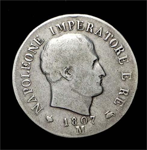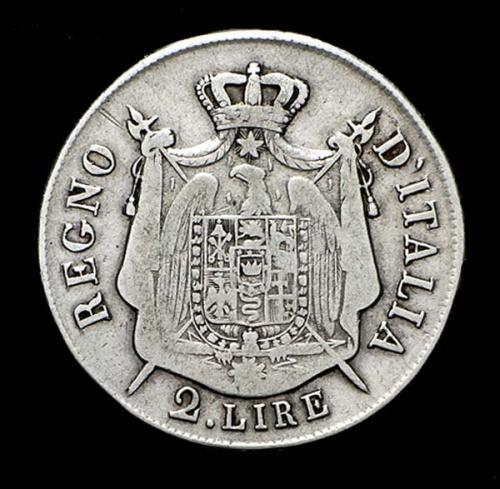 Napoleone I Re d'Italia (1805-1814) - 2 Lire 1807 Zecca: Milano - Diritto: effigie di Napoleone a destra - Rovescio: l'aquila napoleonica regge un grande stemma entro un padiglione riccamente ornato e coronato - Variante con le cifre della data spaziate