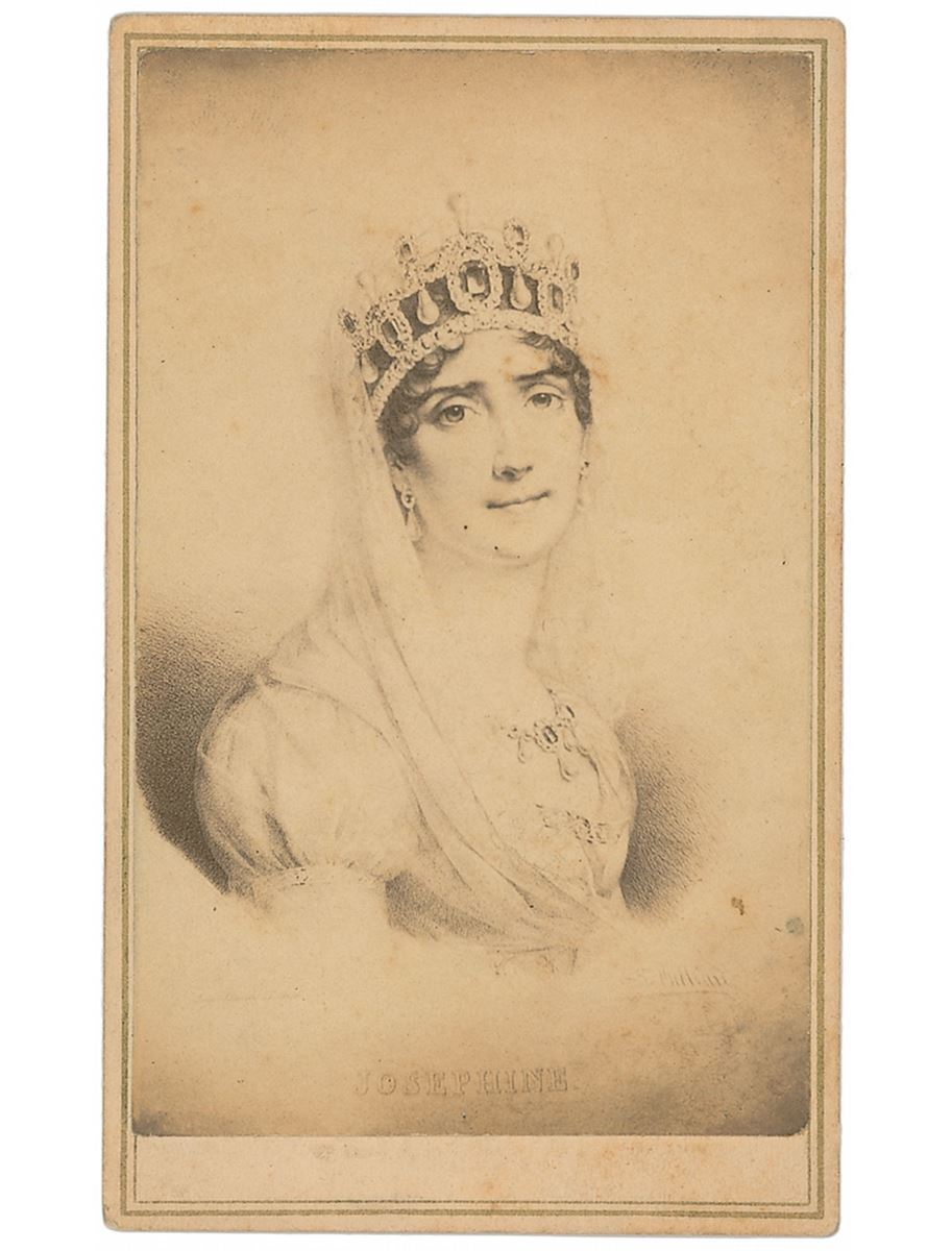 LS in French, signed “Josephine,” one page, 7.25 x 9, January 10, 1812. From her famous Chateau de Malmaison, Josephine sends a letter of recommendation to a councilor of state, in part: (translated): "I am requesting your kindness for Augustin Saint whose brother is one of the painters of the Emperor and of mine. He would like to get the rank of auditor in the accounting division where he has been employed for some time…I recommend him to you with greater pleasure as his morality and services render him worthy of your good will.” In fine condition. Accompanied by an unsigned engraving and carte-de-visite. She received the Malmaison estate following her divorce from Napoleon in 1810, and she endeavored to create the most beautiful garden in all of Europe. The property achieved fame for its rose garden, in which she cultivated over two hundred different varieties of roses from around the world.