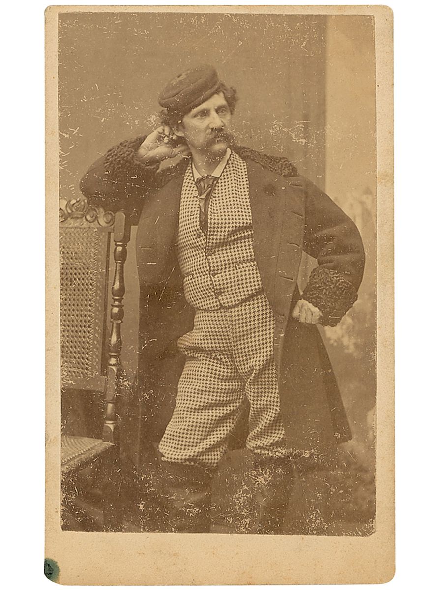 Highly popular and great portrait photographer (1821–1896), renowned for his portraits of the stars of late-19th-century American theater. Unsigned original 2.5 x 4 carte-de-visite three-quarter-length portrait of Sarony by his own studio. In very good to fine condition, with scattered surface marks and wear to the image, a stray ink spot to the lower left corner of the mount, and various notations to reverse.