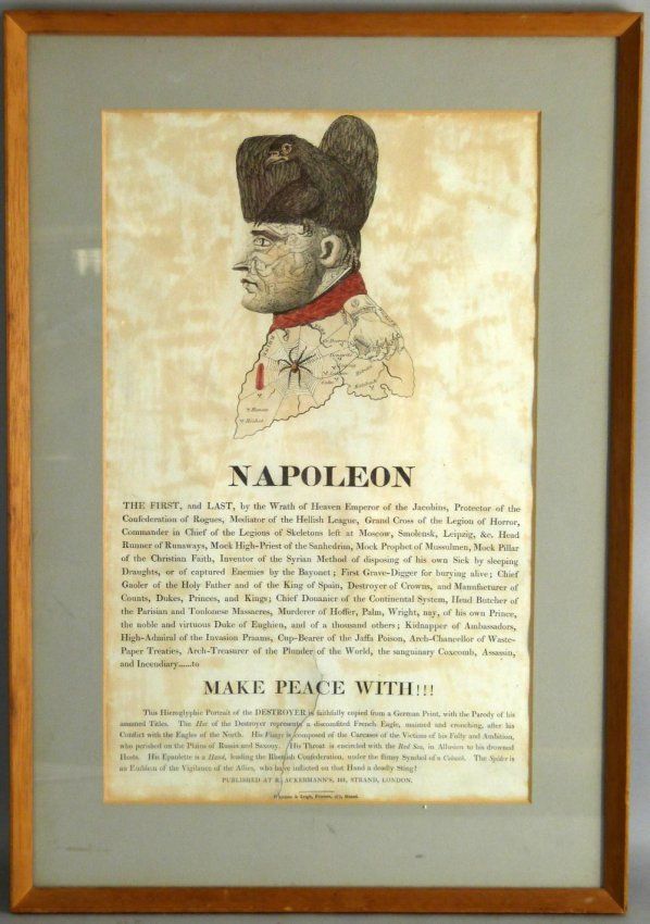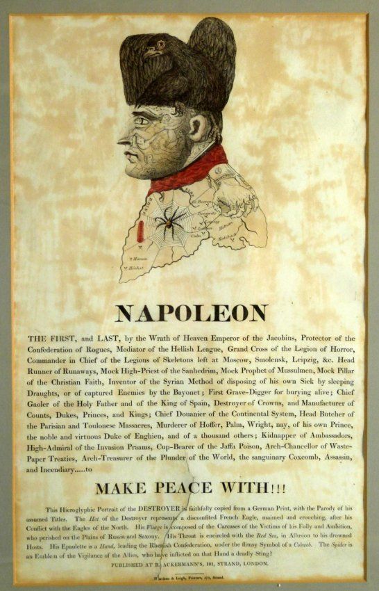 Napoleon , satirical portrait , ' Make Peace with' published by Robert Ackermann, 101 The Strand London printed by Harrison & Leigh . 40.5 x 25 cm