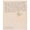 LS in French, signed “Np,” one page, 7.5 x 9, November 1, 1811. Letter to M. Gassendi. In full (translated): “Monsieur Duke of Feltre, I have just looked at the 11th Light-Infantry Regiment. Since this regiment is to receive 1800 conscripts from Italy and is a [a current strength of] 2400 men, which will it bring it to a complete strength of 4000, I ordered 900 recalcitrant conscripts who are supposed to be assigned to it [to be transferred elsewhere]. Have these 900 recalcitrant conscripts be given another destination. Have 10 subjects selected from the elites of the Guards who are capable of being sub-lieutenants and who speak Italian. They should be selected from the Corsicans, Piedmontese, the Genoans, or the Romans. Have them likewise designate five to Saint-Cyr, with the same conditions, and send them to that regiment. On this I pray that God may keep you in His holy protection.” In fine condition, with central vertical and horizontal folds.
