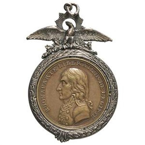 Napoleone Bonaparte (1769-1821). Medaglia 1799 con appiccagnola a forma di aquila a Napoleone libera