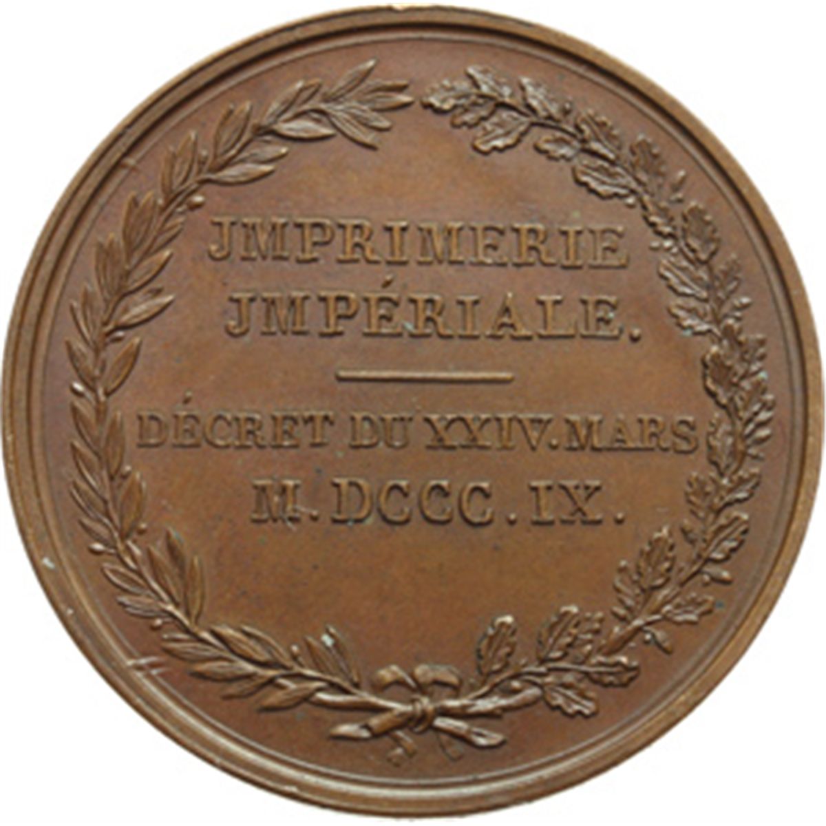 Medaglie Napoleoniche. Napoleone I (1805-1815). Medaglia 1809 perla 'Impremerie Imperiale'. AE. mm. 33.00 Inc. Andrieu. qFDC.