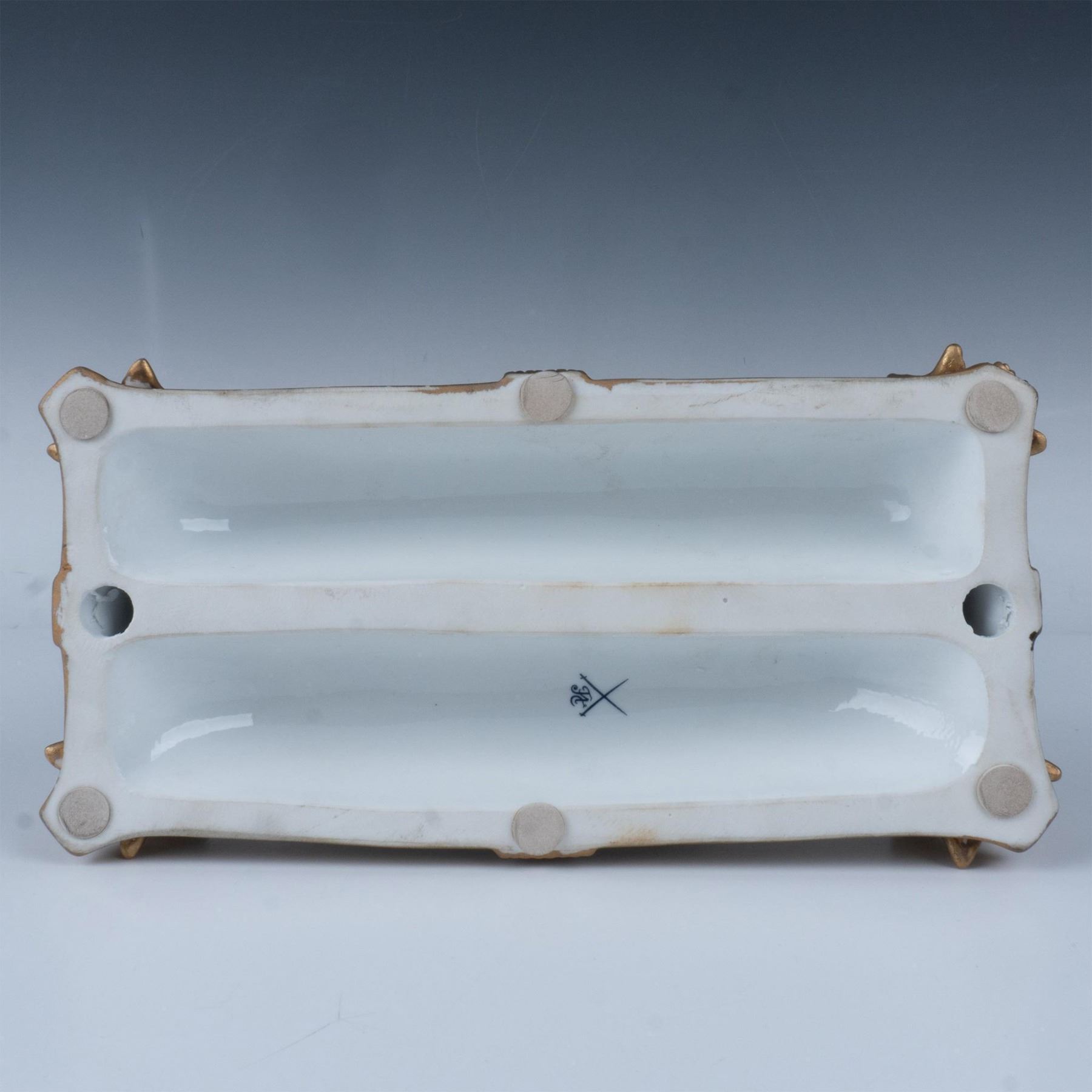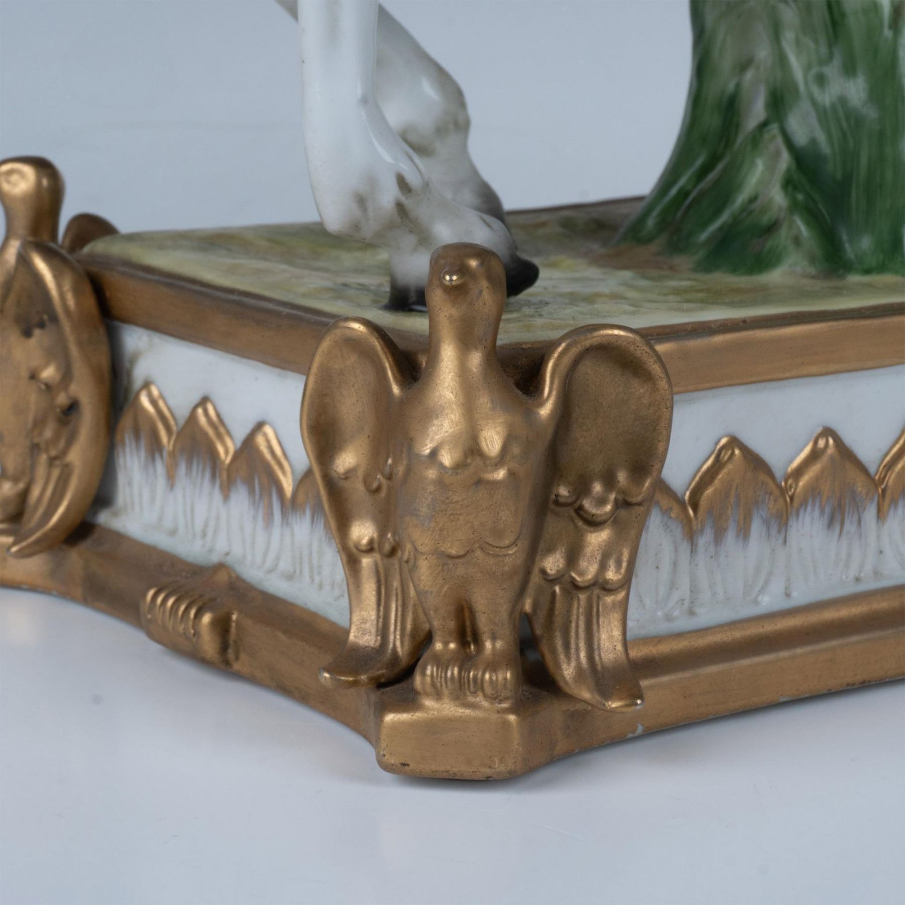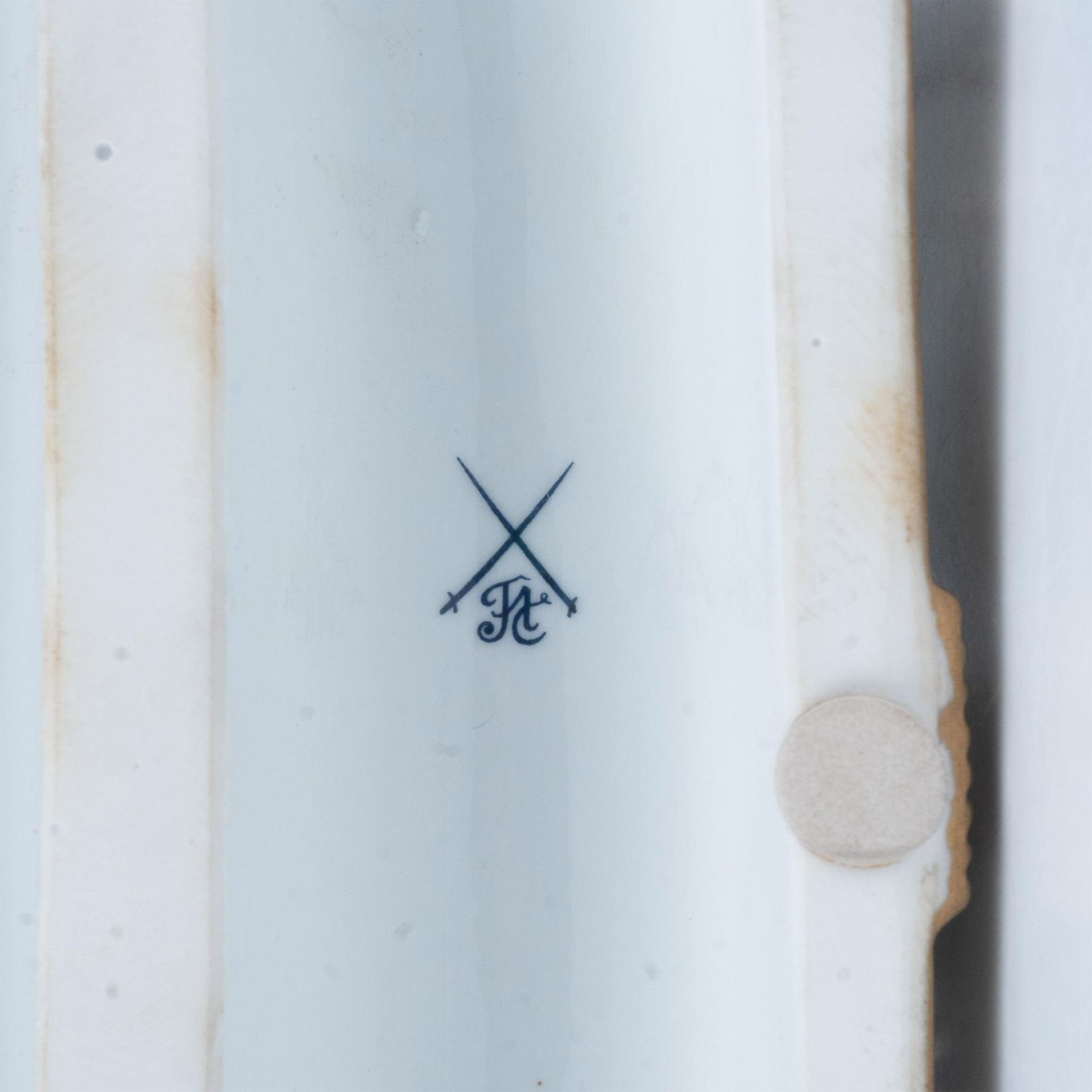 Hand decorated figure of a French general in a black dress uniform, riding a white horse. Crossed swords with initial backstamp.