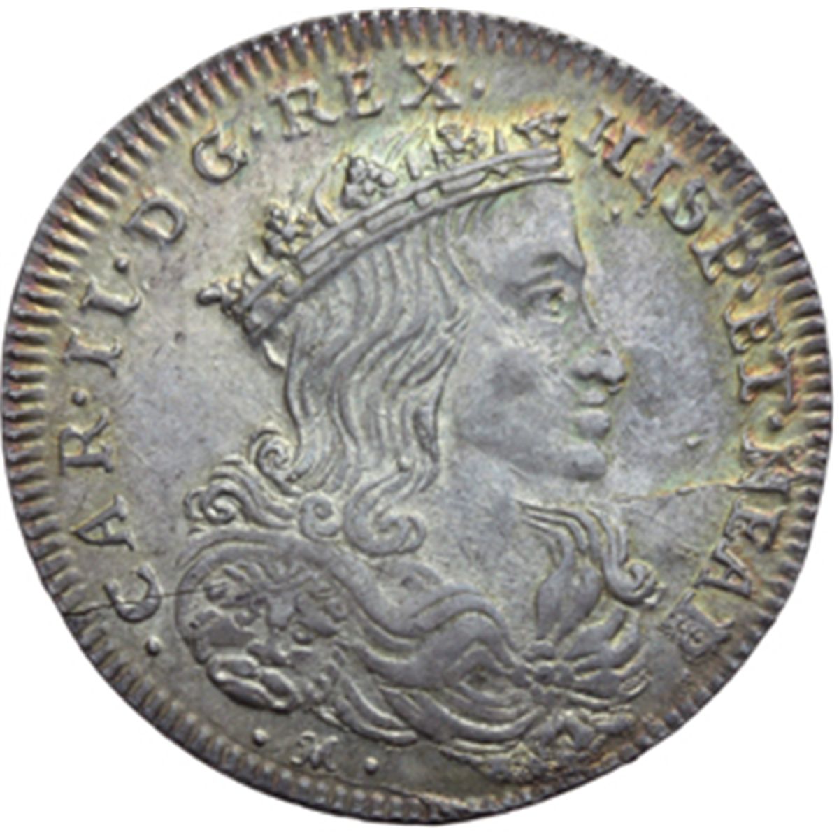 Monete e Medaglie di Zecche Italiane. Napoli. Carlo II (1674-1700). Tarv¨ 1699. P.R. 26, MIR 300/8. AG. g. 4.36 Graffietti al R/. qFDC.