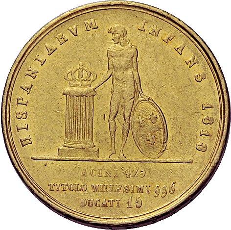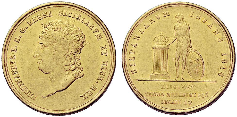 Napoli. Ferdinando I (già IV) di Borbone 1759 – 1825, IV periodo 1816 – 1825. Da 15 ducati 1818. Pagani 79b. Pannuti-Riccio 2. Buon BB