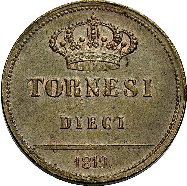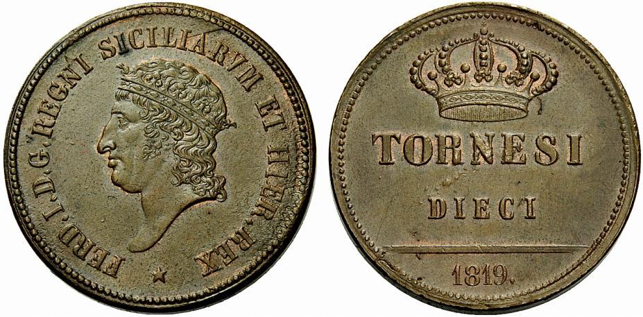 Napoli. Ferdinando I (già IV) di Borbone. IV periodo, 1816-1825. Da 10 tornesi 1819. Pagani 91. Pannuti-Riccio 13. MIR 466. Conservazione insolita, Spl / q.Fdc