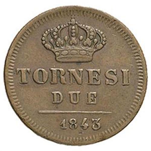 Napoli. Ferdinando II (1830-1859). 2 tornesi 1843. Pag. 401b. AE. qSPL/BB+.