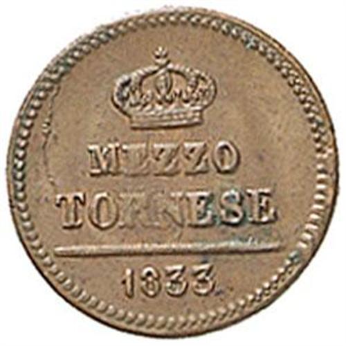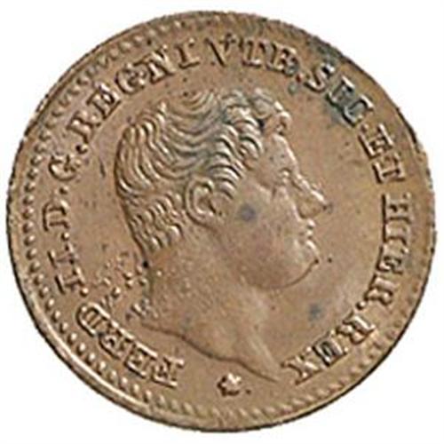 Napoli. Ferdinando II (1830-1859). Mezzo tornese 1833. P-R 301. AE. SPL/qSPL.