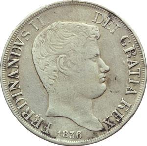 Monete e Medaglie di Zecche Italiane. Napoli. Ferdinando II (1830-1859). Piastra 1836. MIR 500/1. P.R. 61. AG. g. 27.36 BB+.