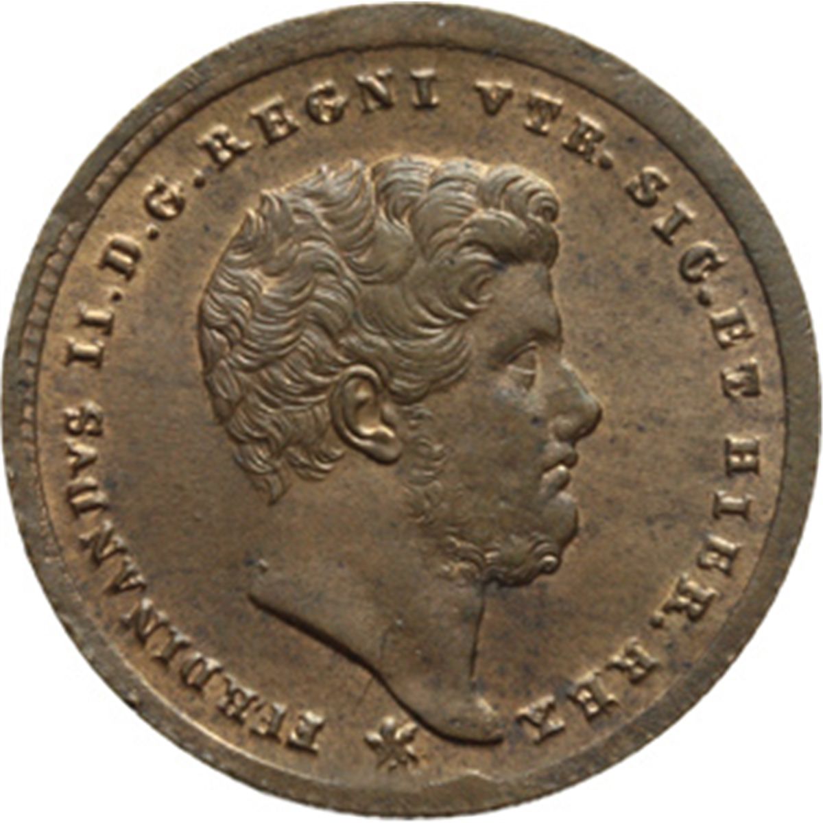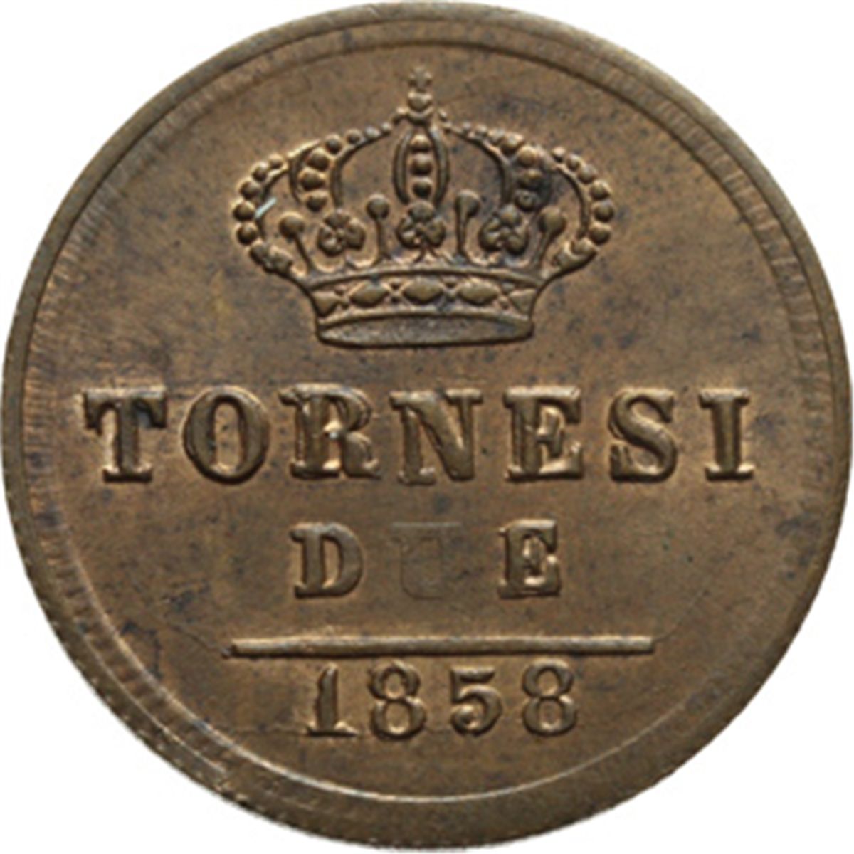 Monete e Medaglie di Zecche Italiane. Napoli. Ferdinando II di Borbone (1830-1859). 2 tornesi 1858. Rame rosso. MIR 528/14. P.R. 260. AE. g. 6.33 QFDC. Altissima conservazione.