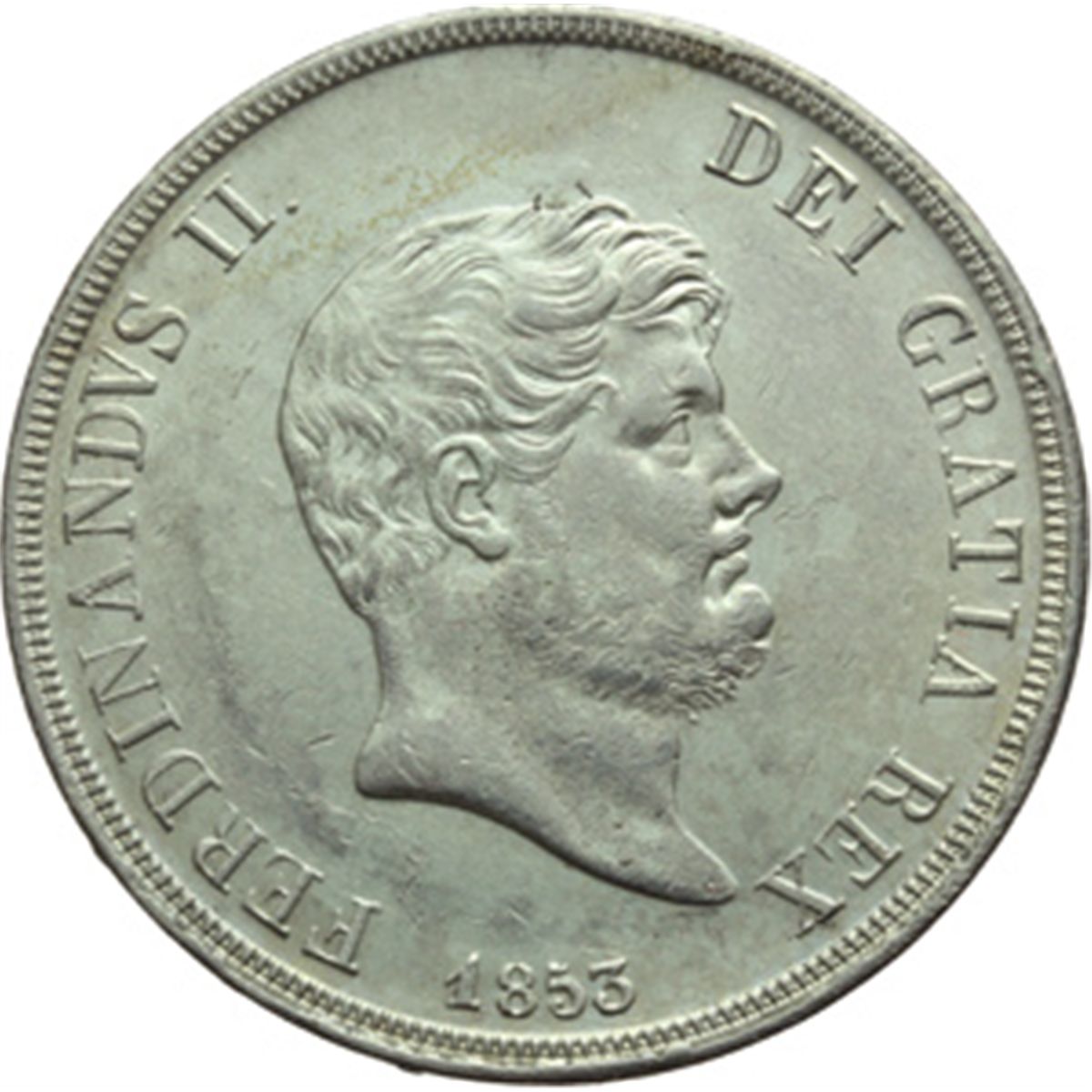 Monete e Medaglie di Zecche Italiane. Napoli. Ferdinando II di Borbone (1830-1859). Piastra 1853. MIR 503/2. P.R. 82. AG. g. 27.54 Fondi lucenti. Graffietti, altrimenti SPL.