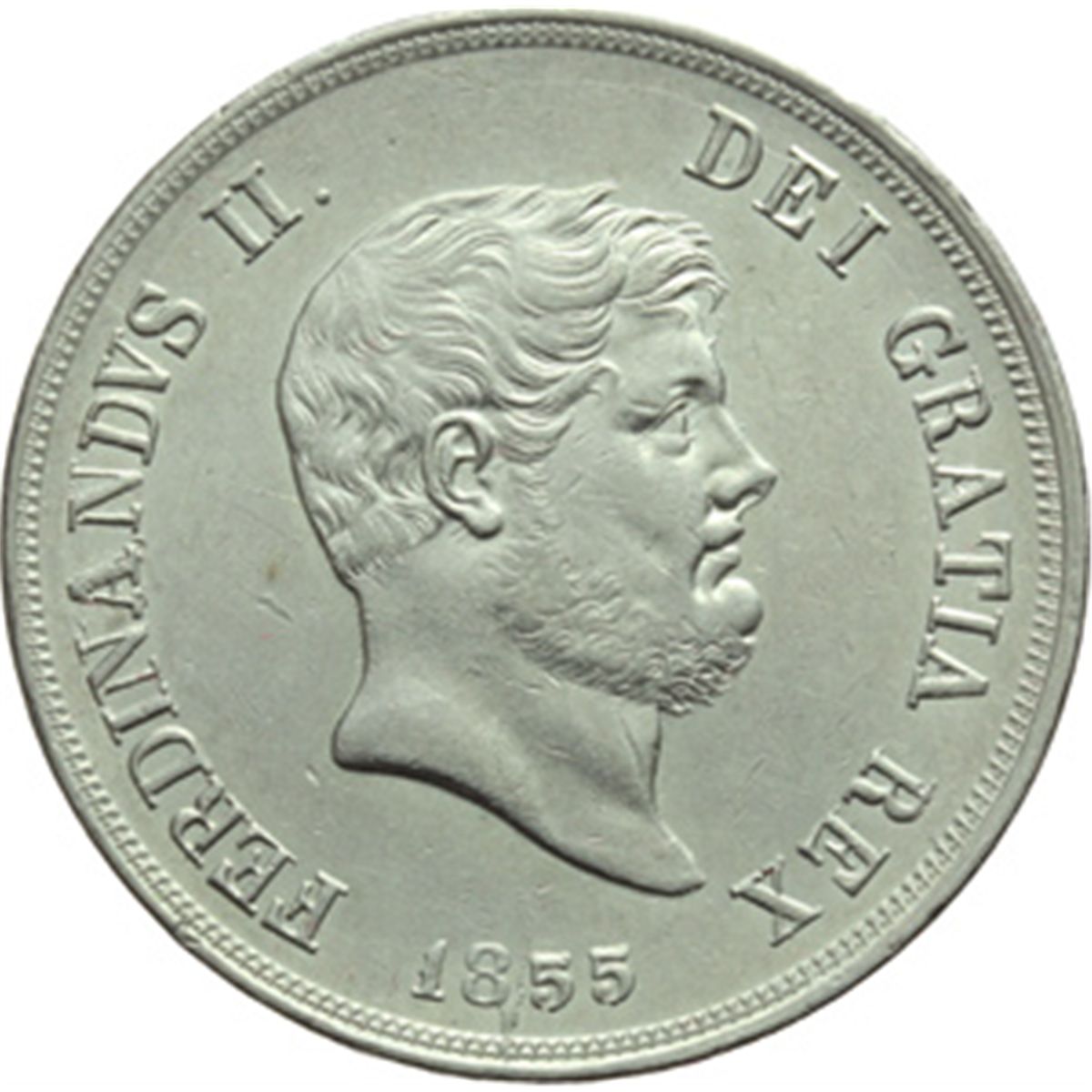 Monete e Medaglie di Zecche Italiane. Napoli. Ferdinando II di Borbone (1830-1859). Piastra 1855. MIR 503/4. P.R. 84. AG. g. 27.56 Graffietti al D/. SPL/SPL+.