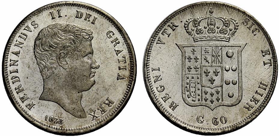 Napoli. Ferdinando II di Borbone,. Mezza piastra 1833.