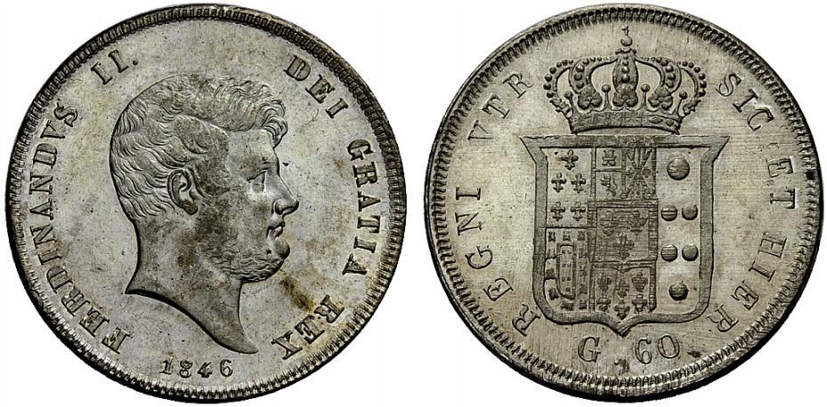 Napoli. Ferdinando II di Borbone, 1830-1859. Mezza piastra 1846. Pagani cfr.240a. Pannuti-Riccio 102. MIR 507. Rara. q.Fdc