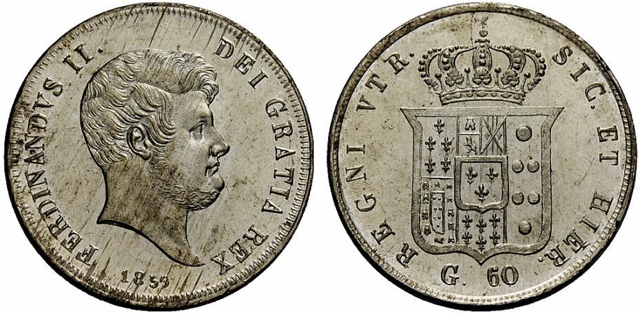 Napoli. Ferdinando II di Borbone, 1830-1859. Mezza piastra 1859. Pagani 251. Pannuti-Riccio 113. MIR 507\12. q.Fdc