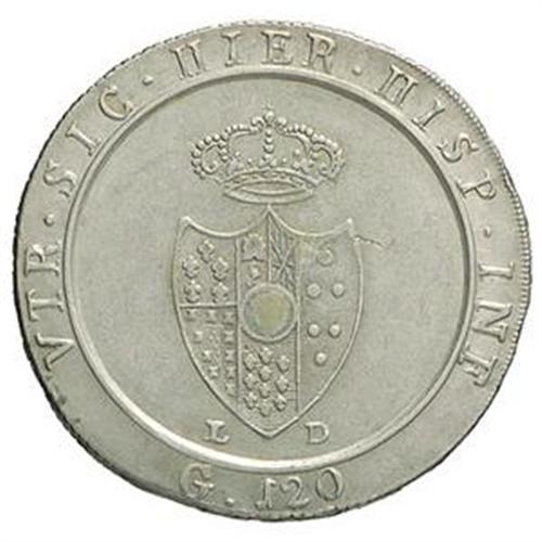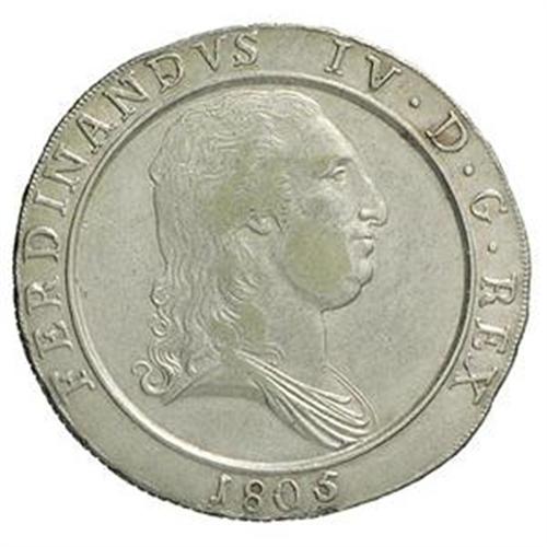 Napoli. Ferdinando IV (1759-1816). Piastra 1805 capelli lisci. P.R. 11. R. AG. Bel BB+.