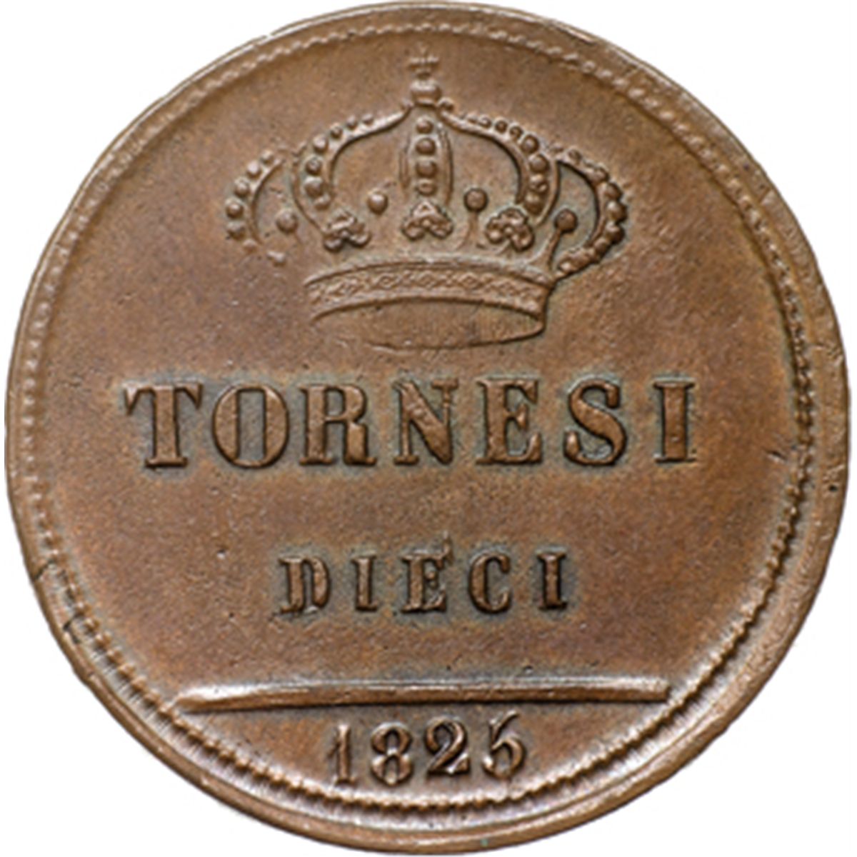 Monete e Medaglie di Zecche Italiane. Napoli. Francesco I (1825-1830). 10 tornesi 1825. MIR 480. P.R. 14. AE. g. 27.76 NC. SPL. Ex NAC, Milano 2006, 1134.