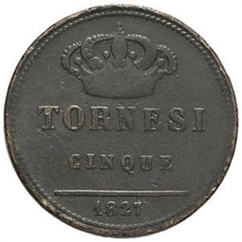 Napoli. Francesco I (1825-1830). 5 tornesi 1827. Pag. 122b. R. AE. MB+.