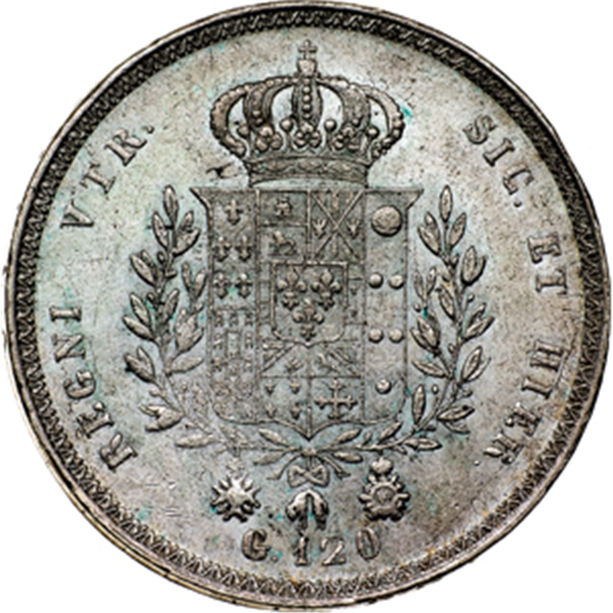 Monete e Medaglie di Zecche Italiane. Napoli. Francesco I (1825-1830). Piastra 1826, reimpressa. P.R. 9. MIR 476/3. AG. g. 27.35 RRR. BB+.